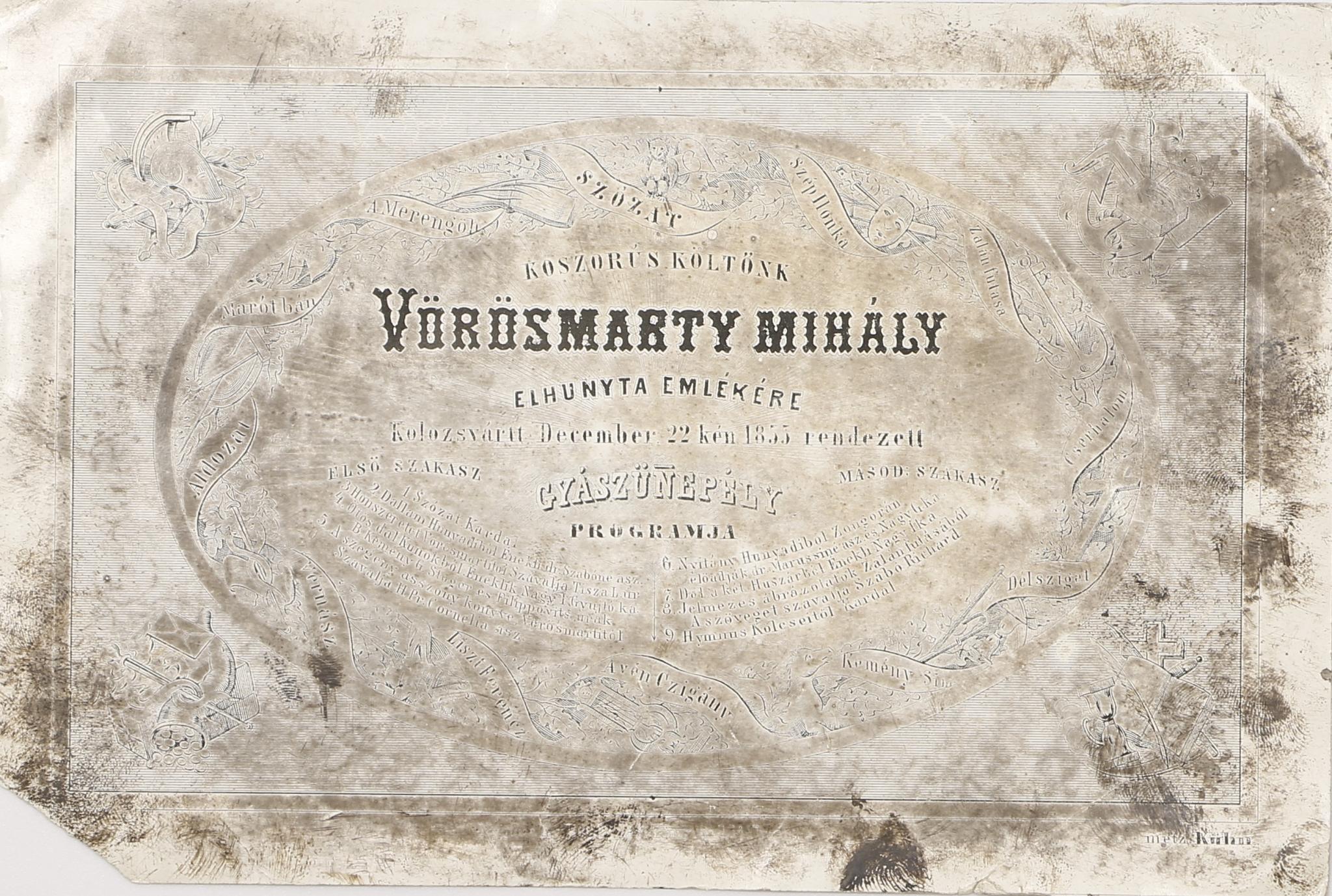 [Meghívó] koszorús költőnk Vörösmarty Mihály elhunyta emlékére Kolozsvártt december 22-én 1855. rendezett gyászünnepély programra.