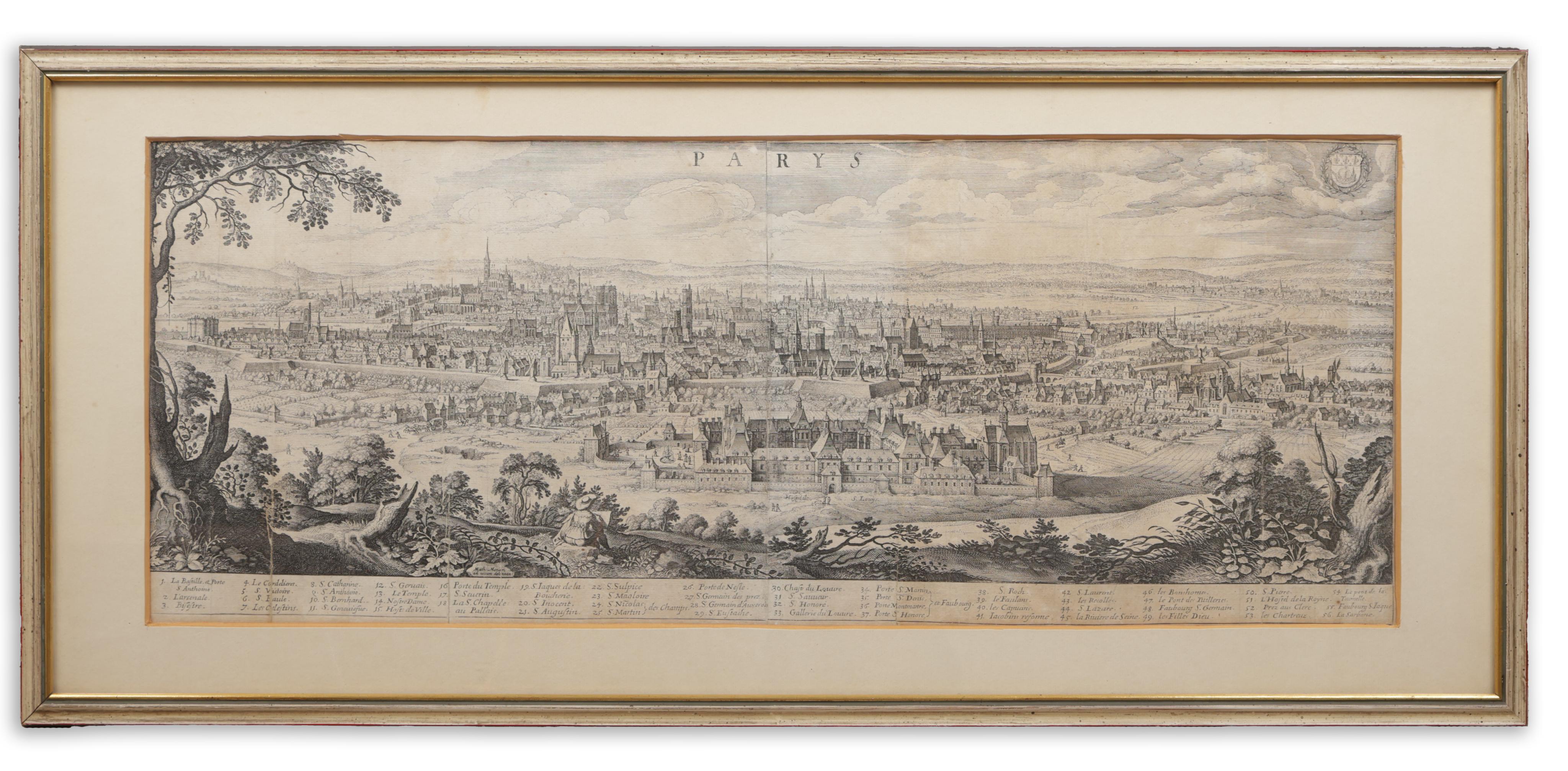 Maga a látkép valóban kivételes. A kép alatt ötvenhat helyszínt és nevezetességet azonosít egy számozott kulcs. Könnyen felismerhető a Notre Dame, a Bastille, valamint számos más épület a városfalakon belül és kívül. A Szajna folyó kanyarog keresztül a városon, majd eltűnik a távolban. Apró alakok – gyalog, lóháton vagy hintóban – mozognak az utakon és a Hôpital Saint-Louis környékén, életet adva a jelenetnek.