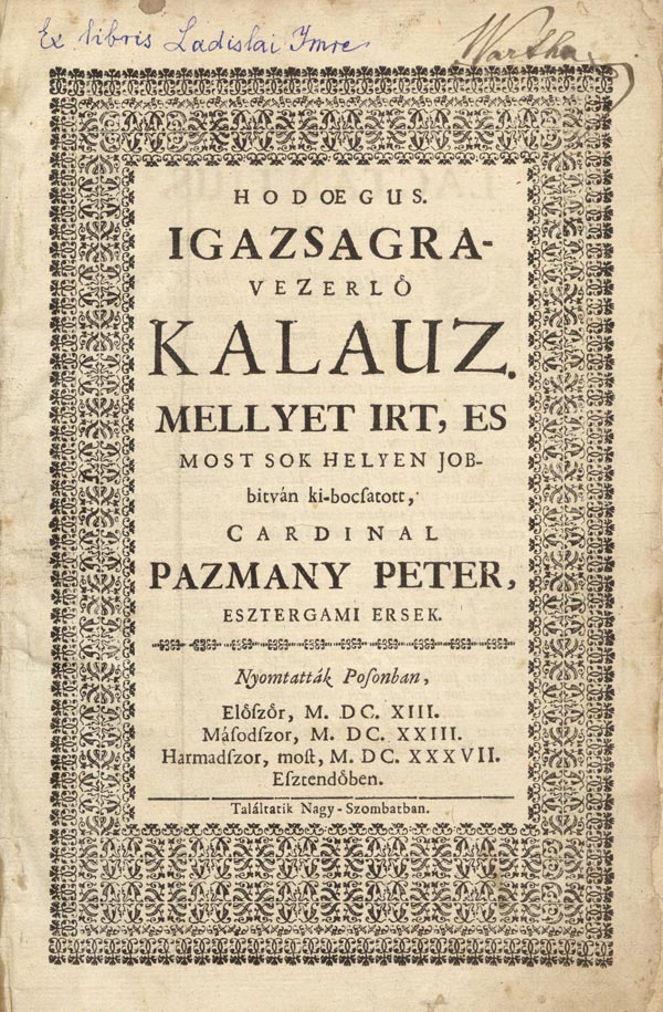 Hodoegus. Igazságra-vezerlö kalauz, mellyet irt, es most sok helyen jobbitván ki-bocsátott, cardinal ---.