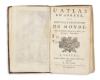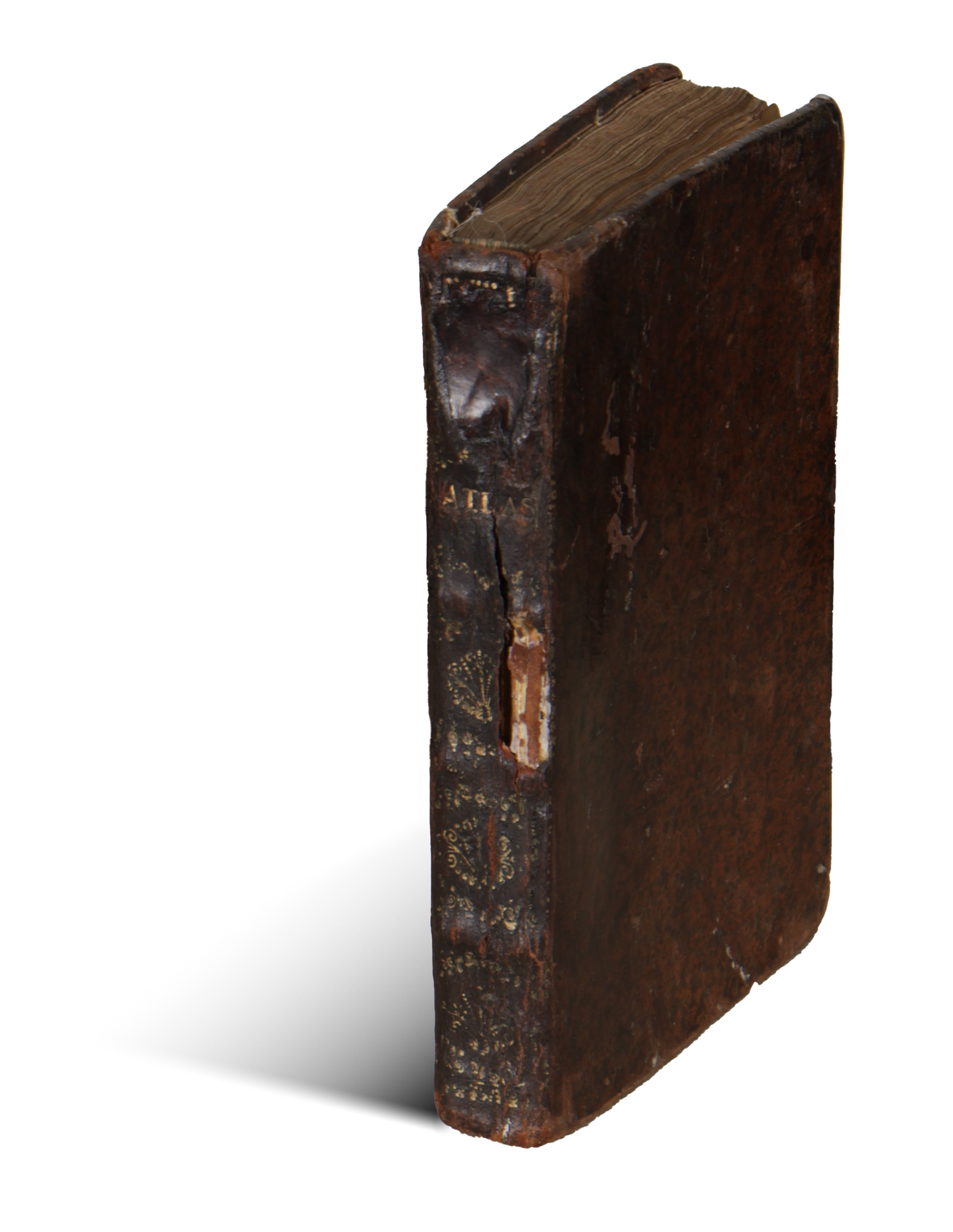 Contemporary full leather binding with raised bands and gilt to worn and damaged spine, with a wormhole mark on front cover. Pages waterstained.