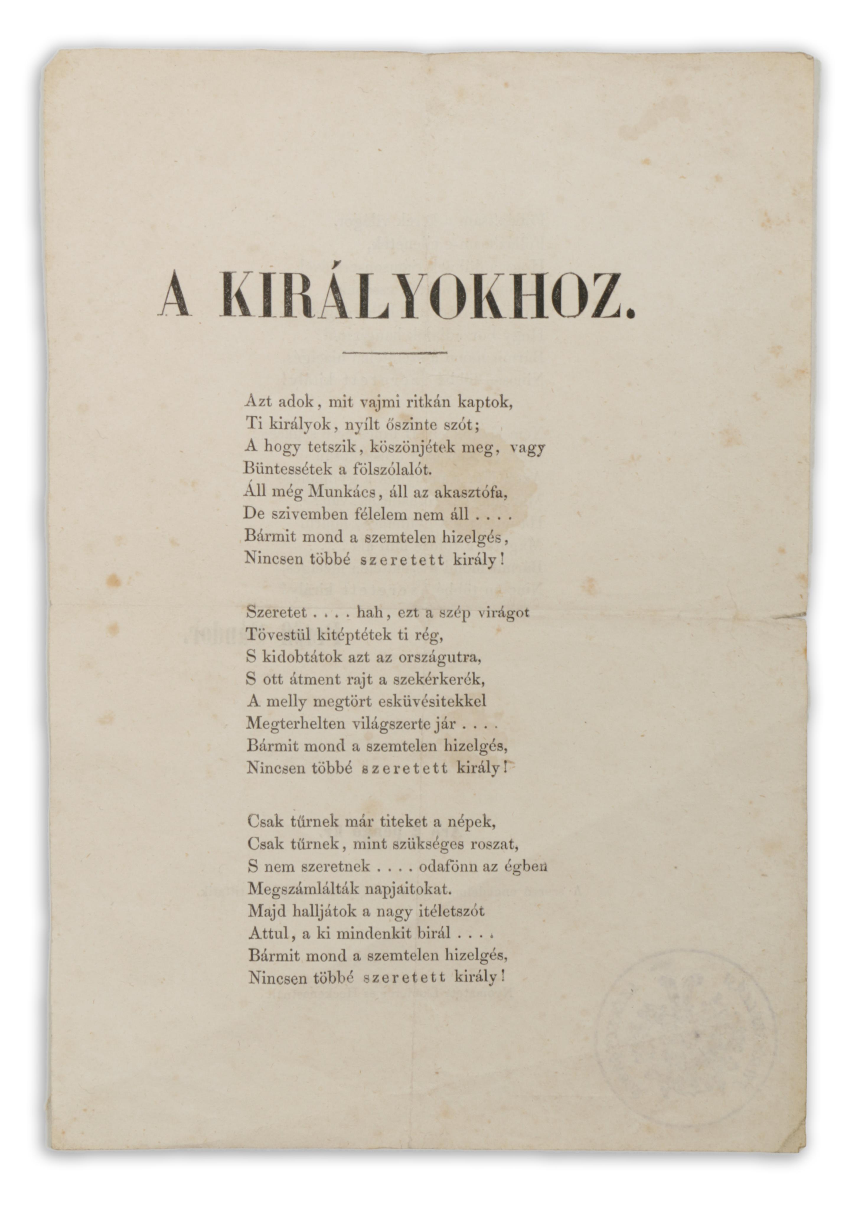 Sándor Petőfi: To the Kings (Pamphlet from 1848).