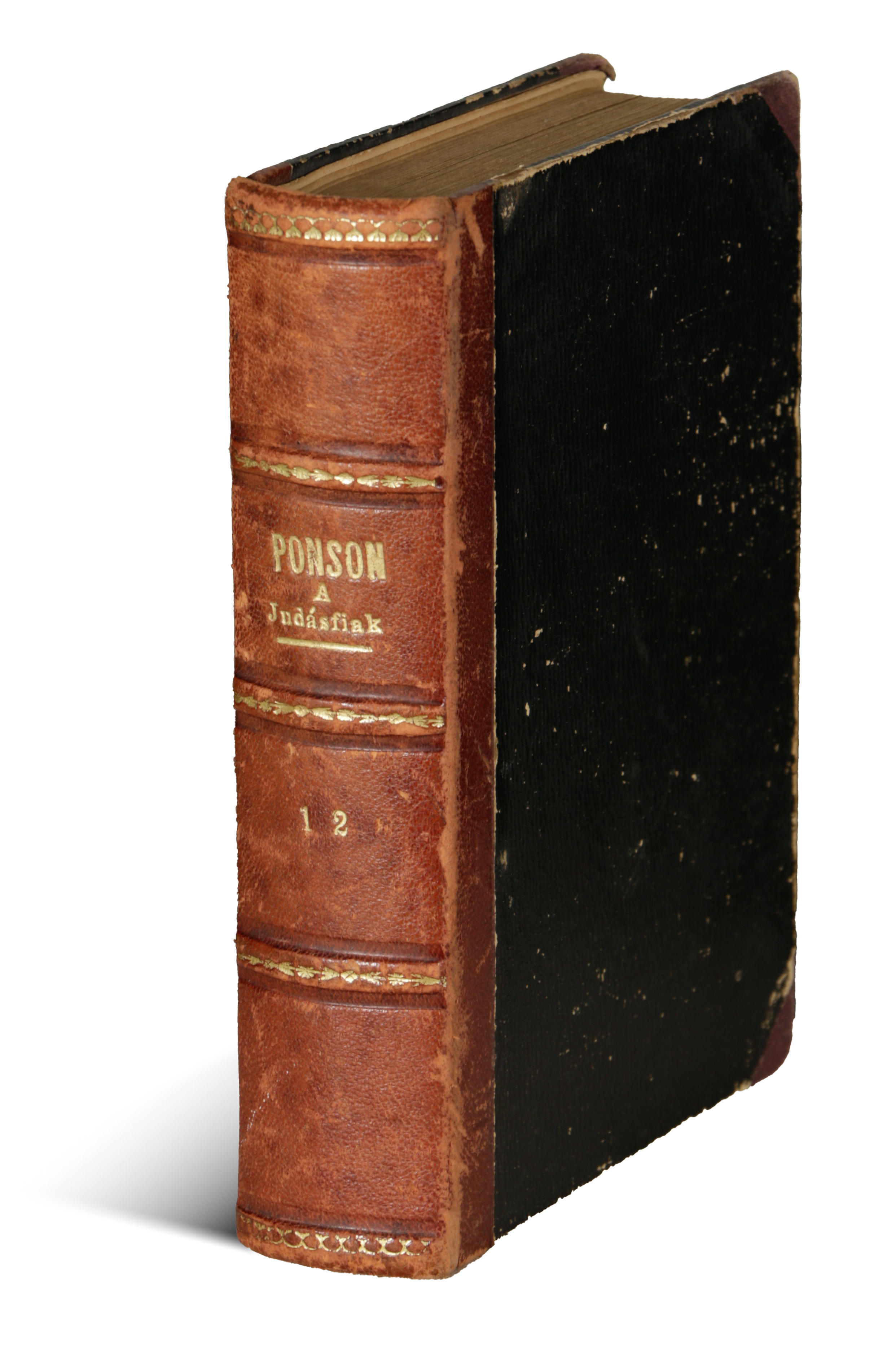 Korabeli bordázott és aranyozott gerincű félbőr kötésben, a címlapon kis hiány és névbeírás.