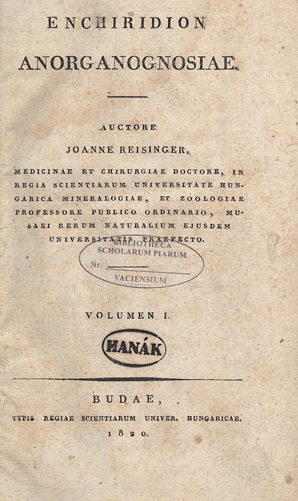 Enchiridion anorganognosiae. Volumen I [unicus].