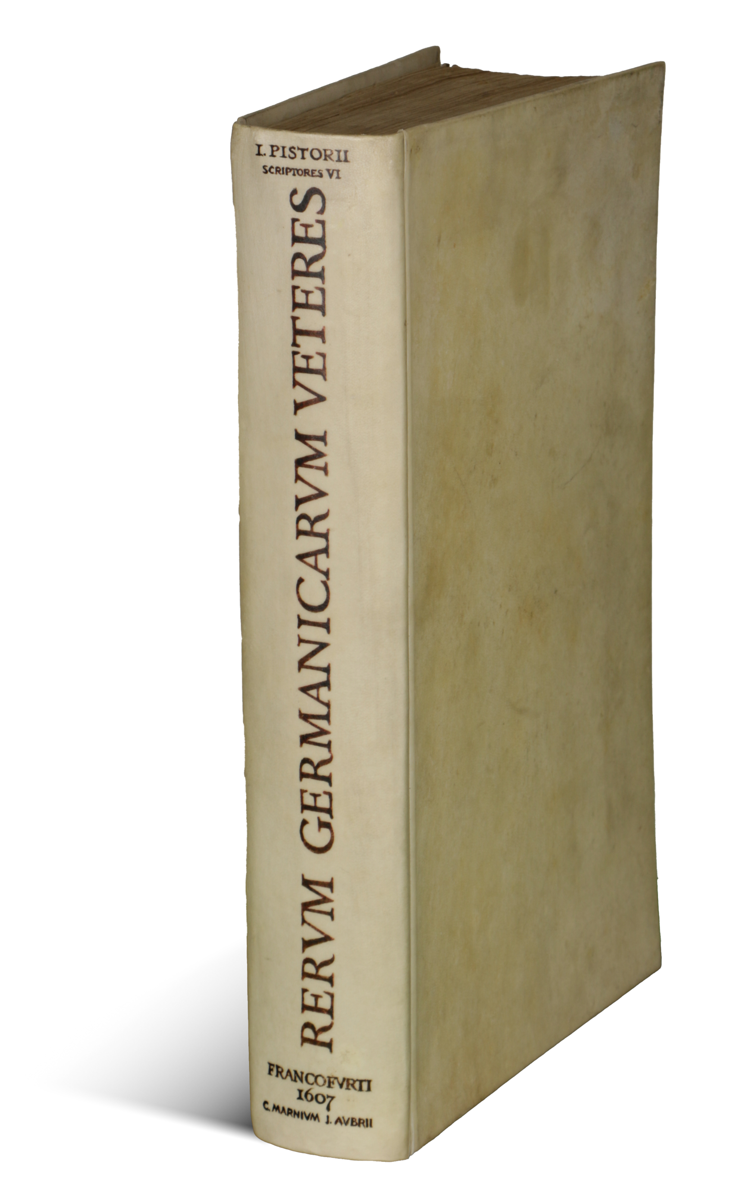 Francofurti, 1607. Claudium Marnium & Ionannis Aubrii.A német középkor történetére vonatkozó, először 1583-ban megjelent, Johann Pistorius von Nidda (1546-1608) német orvos, történész és katolikus teológus által szerkesztett fontos forrásgyűjtemény második kiadása. A harmadik, mértékadó és jelentősen bővített kiadás csak 1726-ban jelent meg.