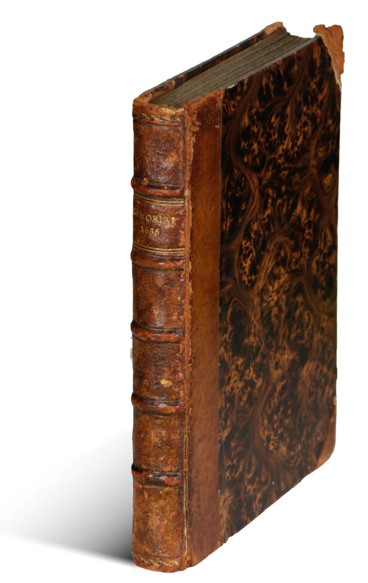 Későbbi, bordázott gerincű félbőr kötésben, gerincen felirattal. Keretdíszes lapokkal. Címlapja foltos, számos levelének alsó része pótolt, kisebb szöveghiánnyal. Előzéken Grünvalszky Károly ex libris bélyegzője.