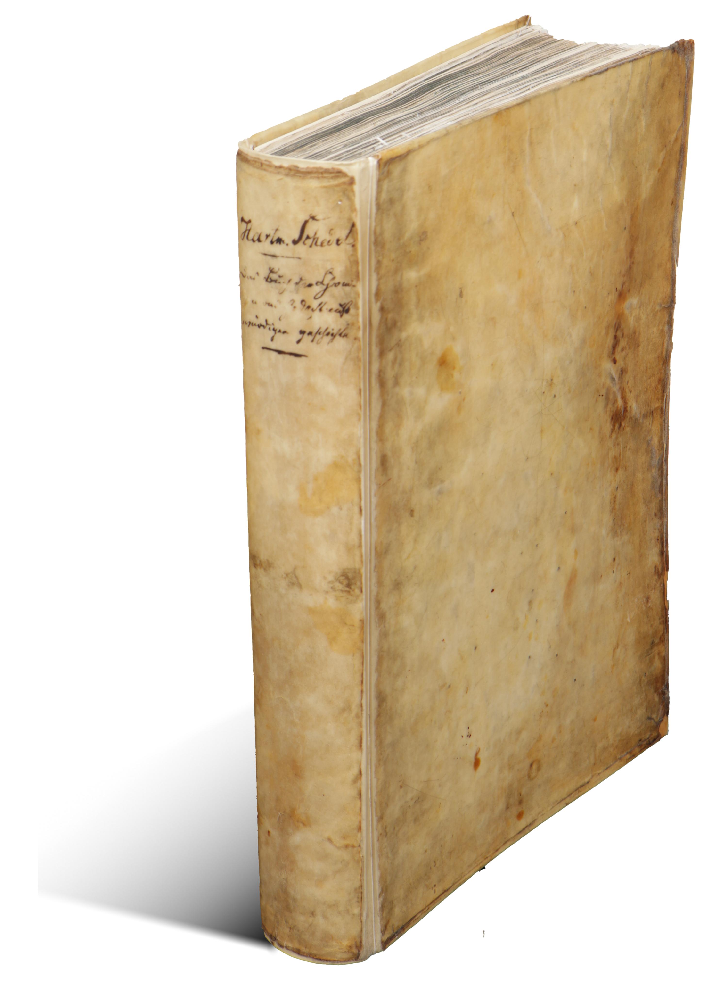Vellum binding, spine mounted on new vellum, endpapers renewed.