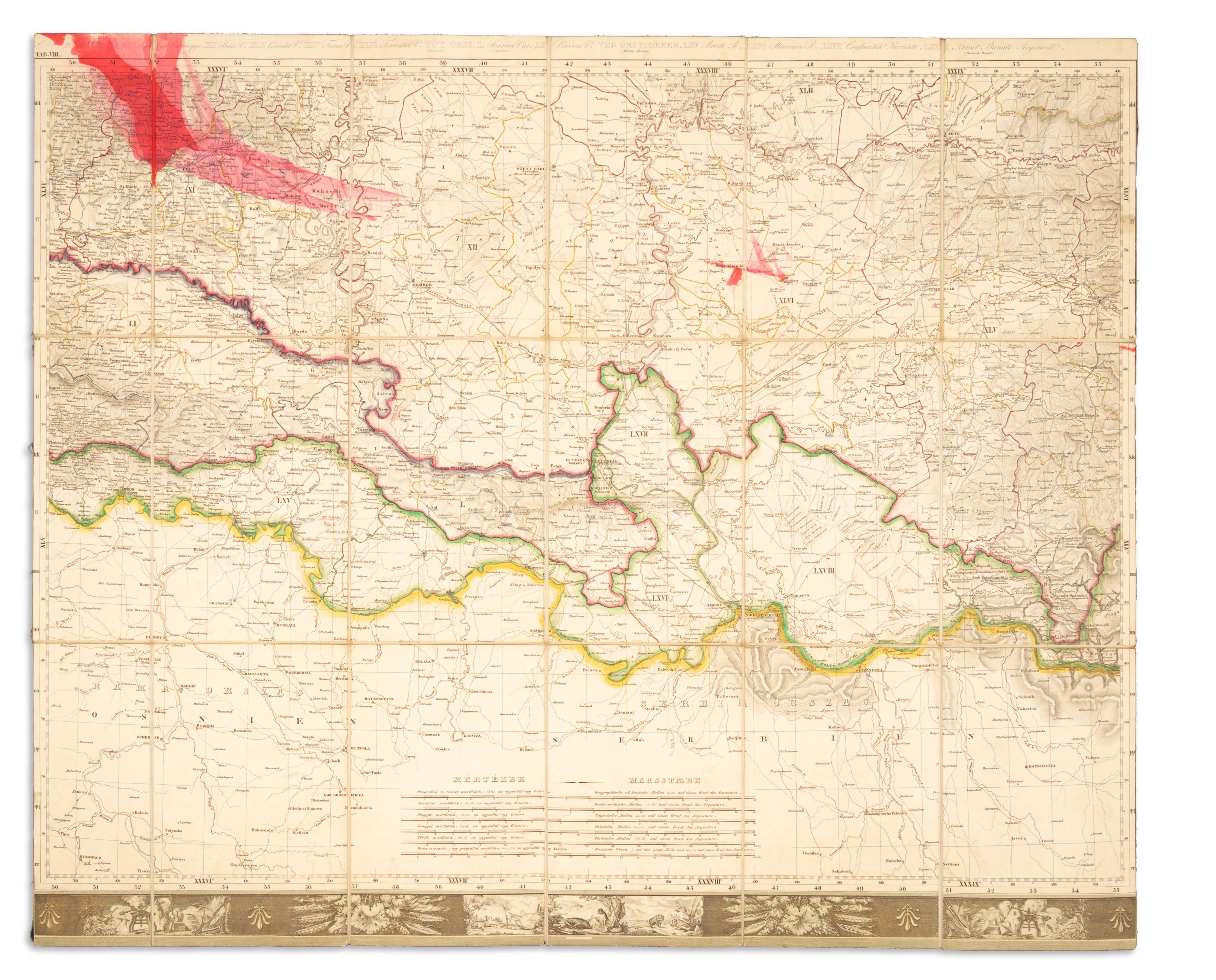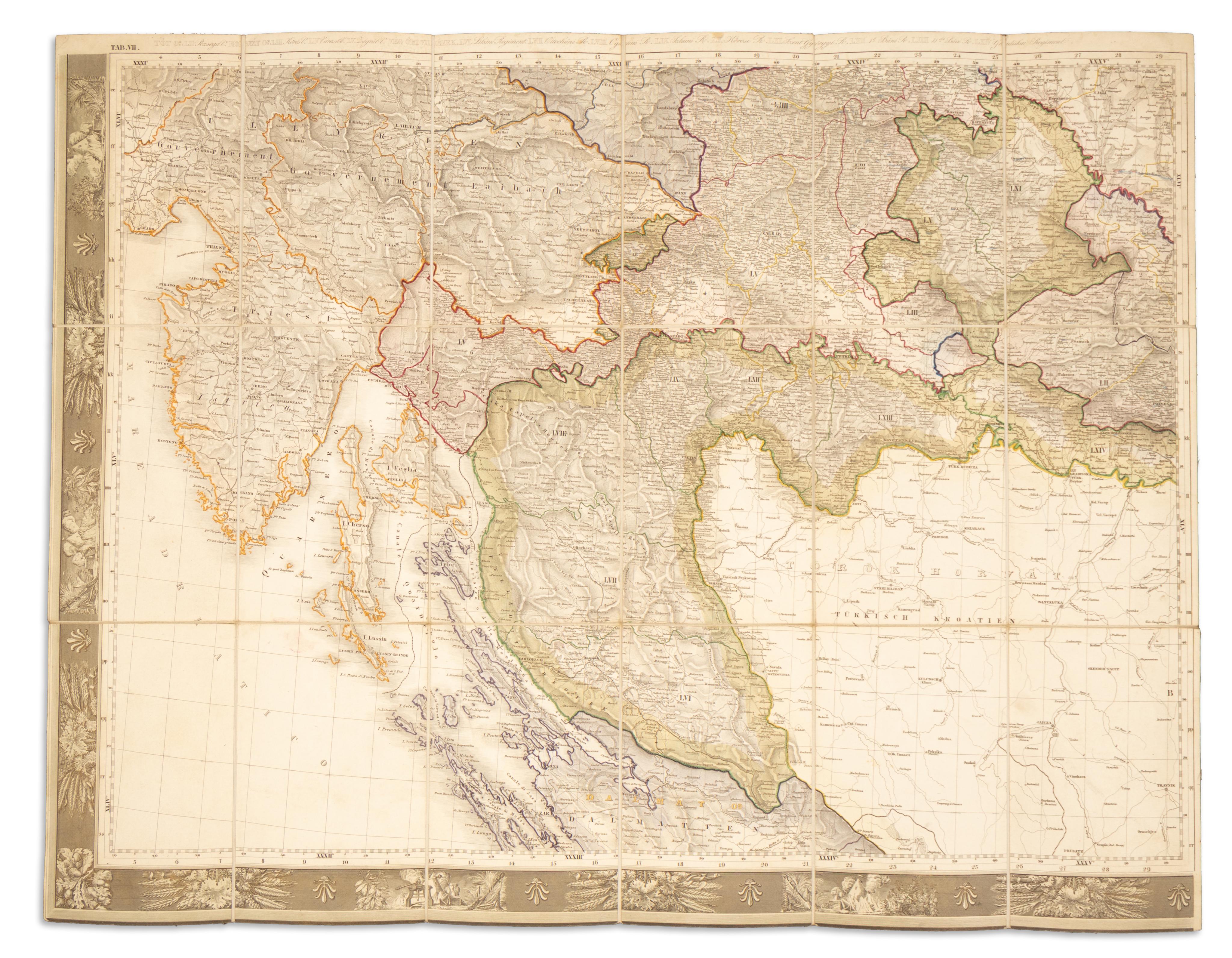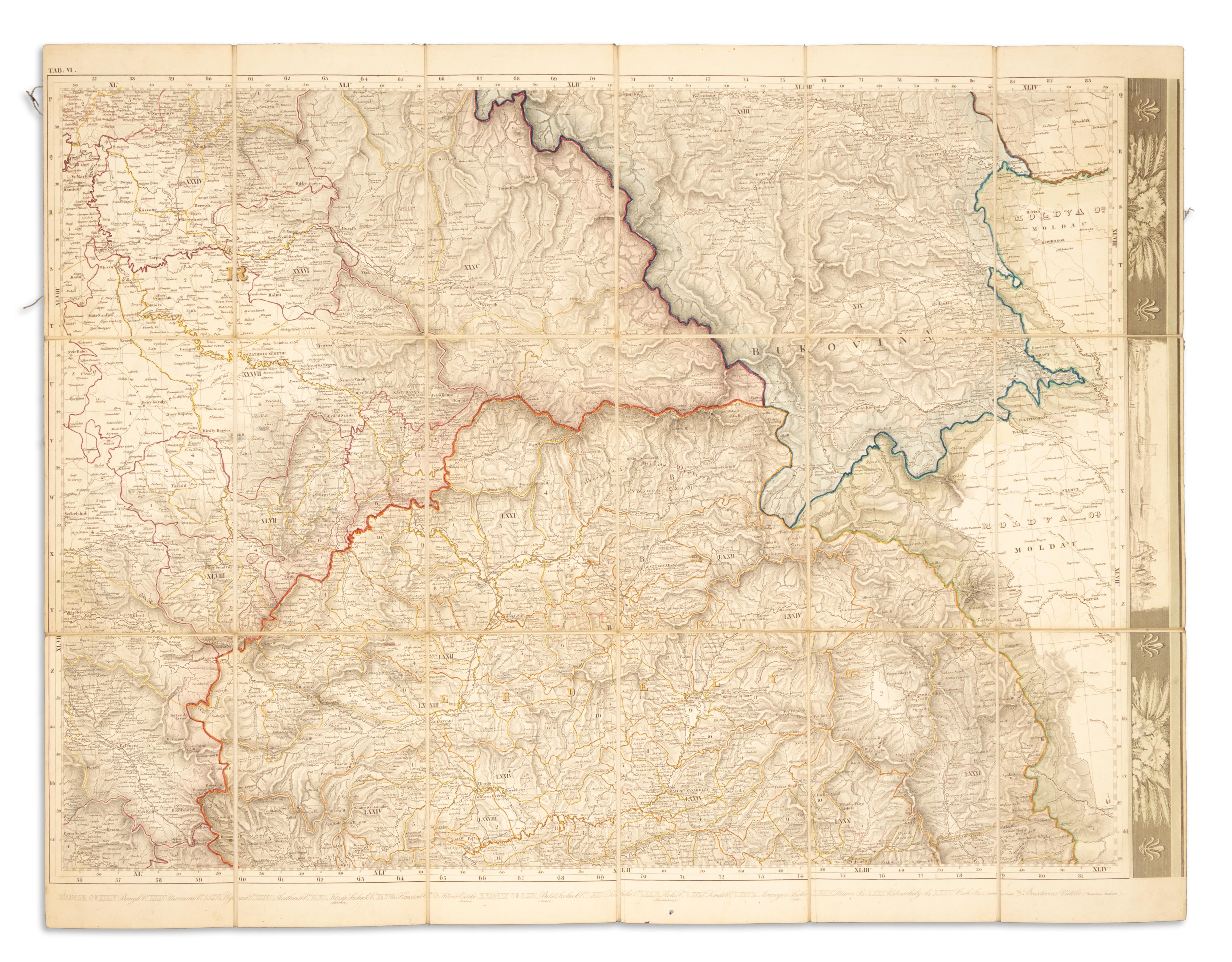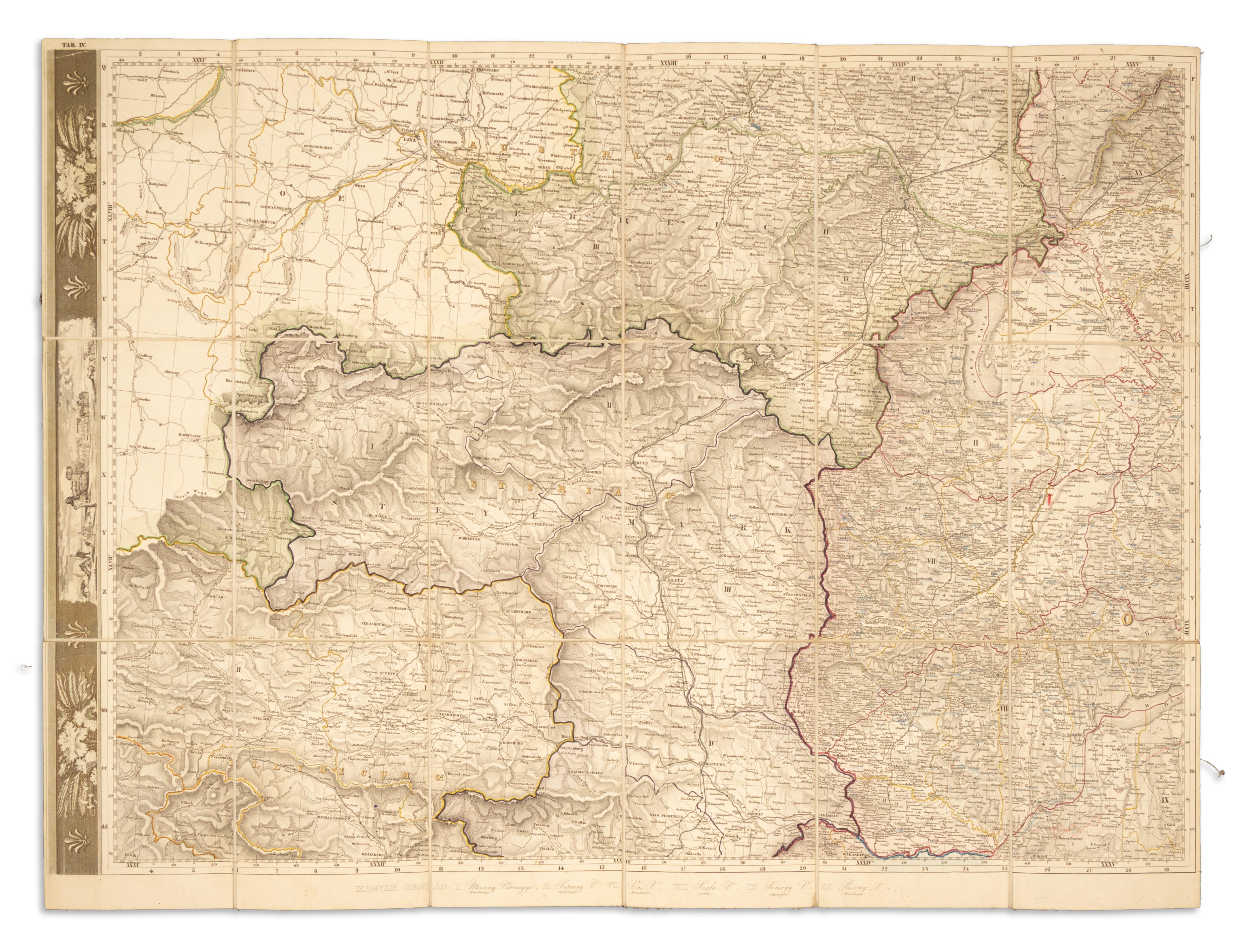 Hungary, Croatia, Lake Tót, Dalmatia, Transylvania, the ‘coastal’ and the borderlands’ common post and road maps...Beautiful, border-colored, copper-engraved map sheets. Only five sections out of nine!
