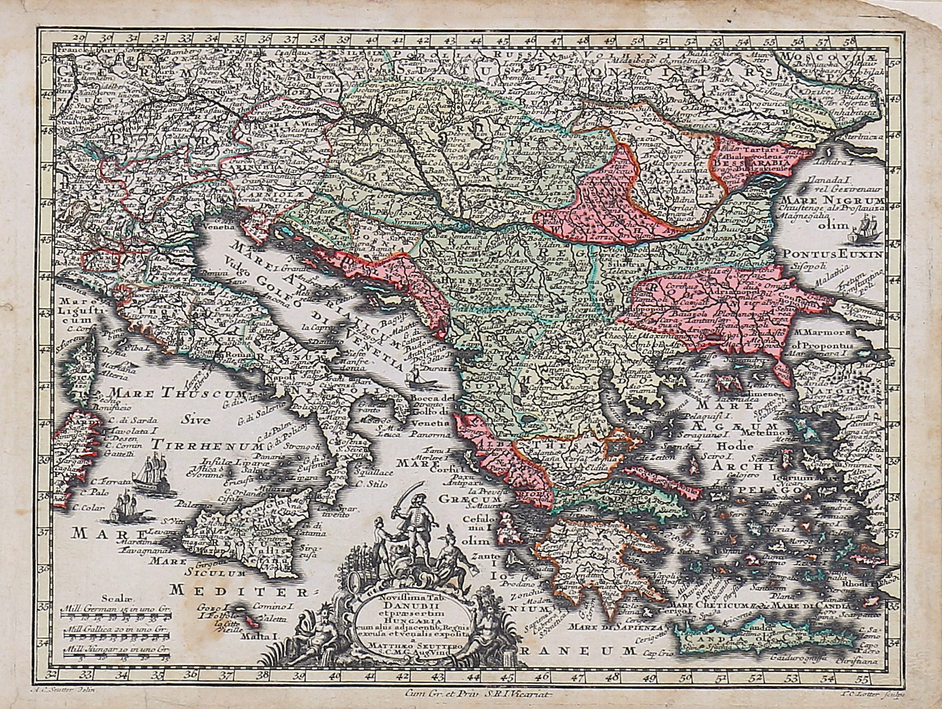 Seutter részletes térképe az osztrák örökösödési háború (1740-1748) által jelentősen érintett területeket mutatja be. A térképen jól látható a Duna, Magyarország és a szomszédos királyságok mellett Görögország, a Morea-félsziget és a különböző kisebb szigetek is.