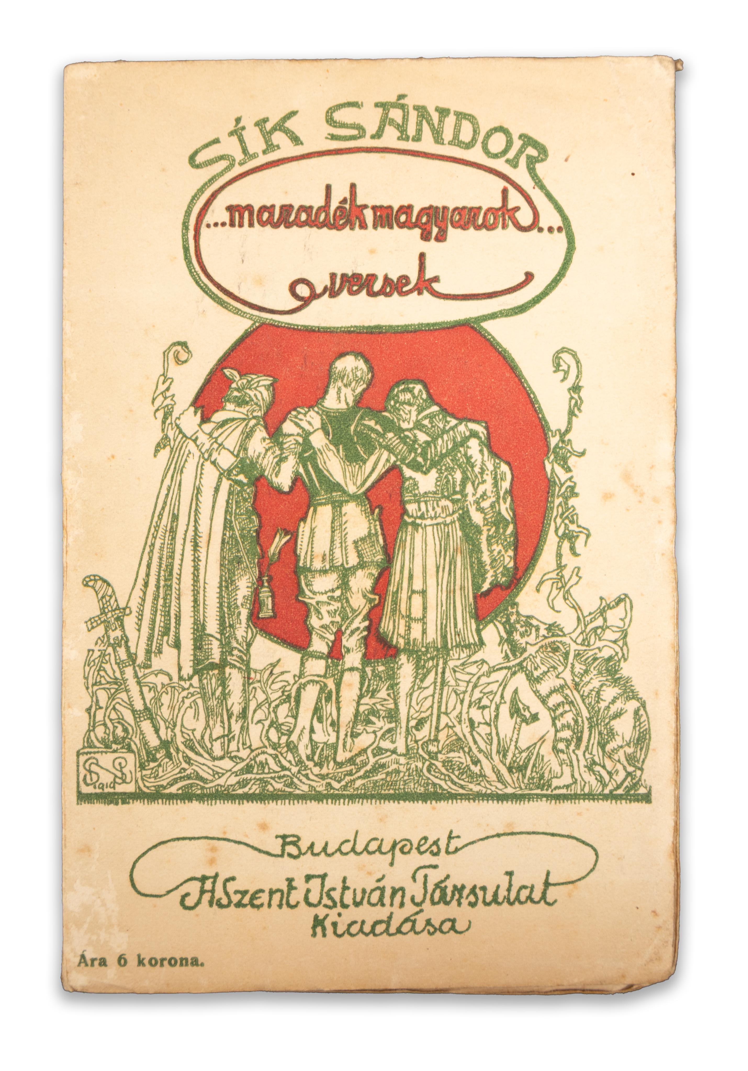 Nagy Sándor által tervezett szecessziós, színes, rajzos, körülvágatlan kiadói papírborítóban. Címlapján névbejegyzés.