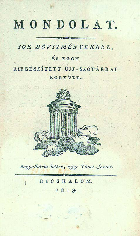 Mondolat. Sok bővitményekkel, és eggy kiegészített újj-szótárral eggyütt. Angyalbőrbe kötve, eggy Tünet-forint.