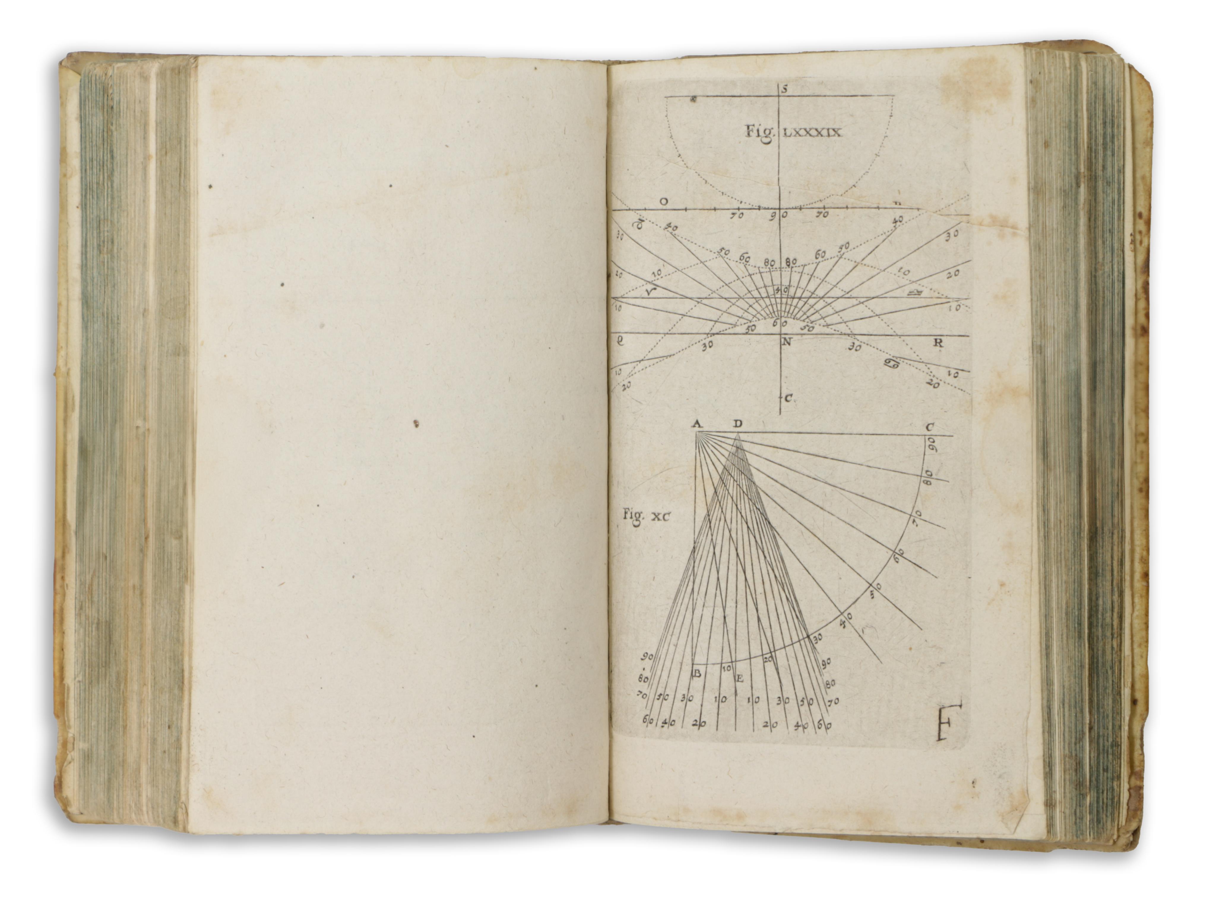 Rare astronomical work in good condition. 4 parts in one volume. Engraved title-page, printed in red and black. Our copy contains a total of 104 engraved plates with astronomical calculations, geometric measurements, vectors and instruments. The work was first published in German in 1675.