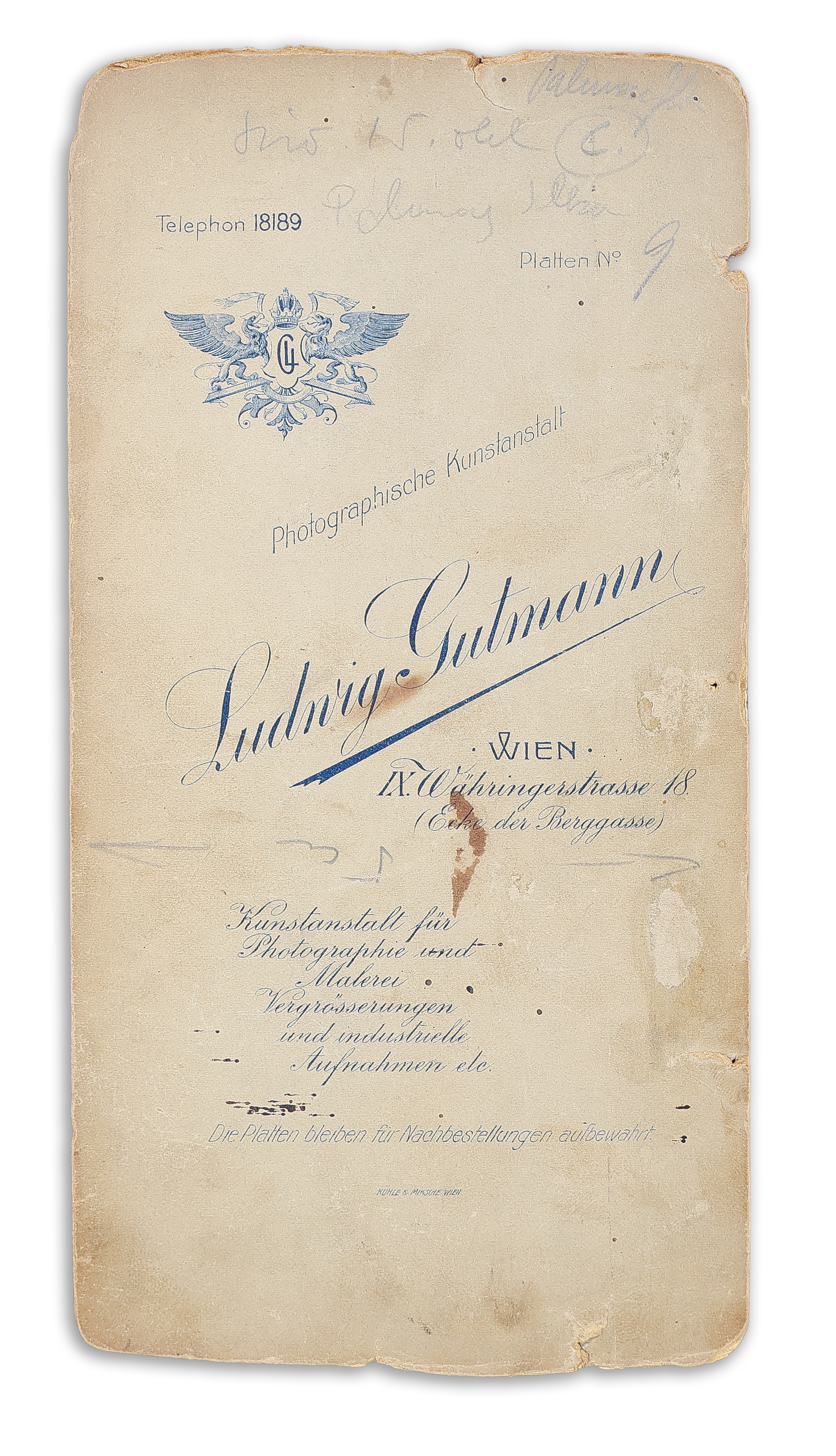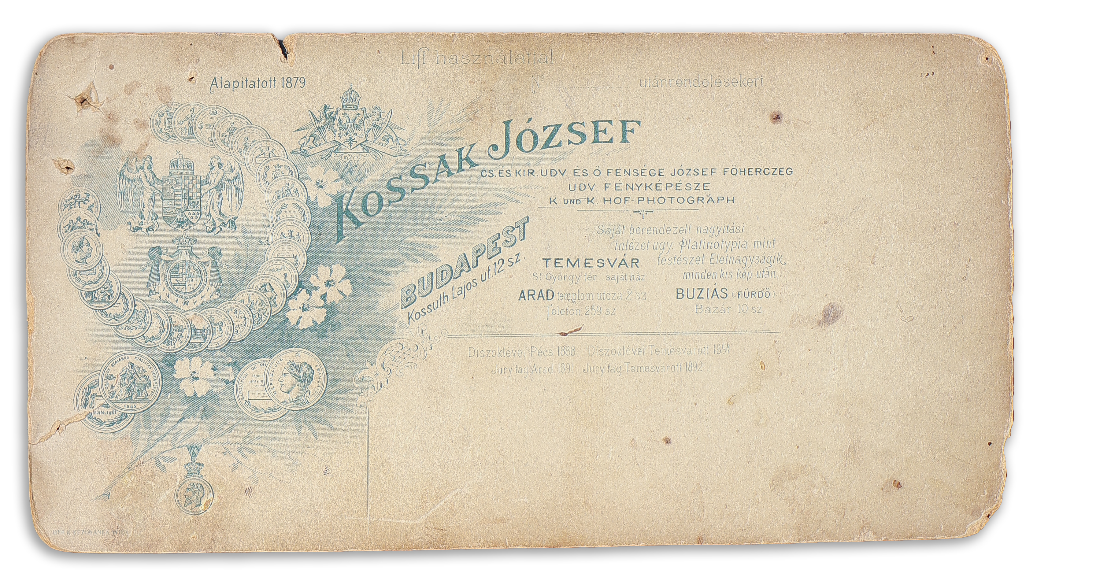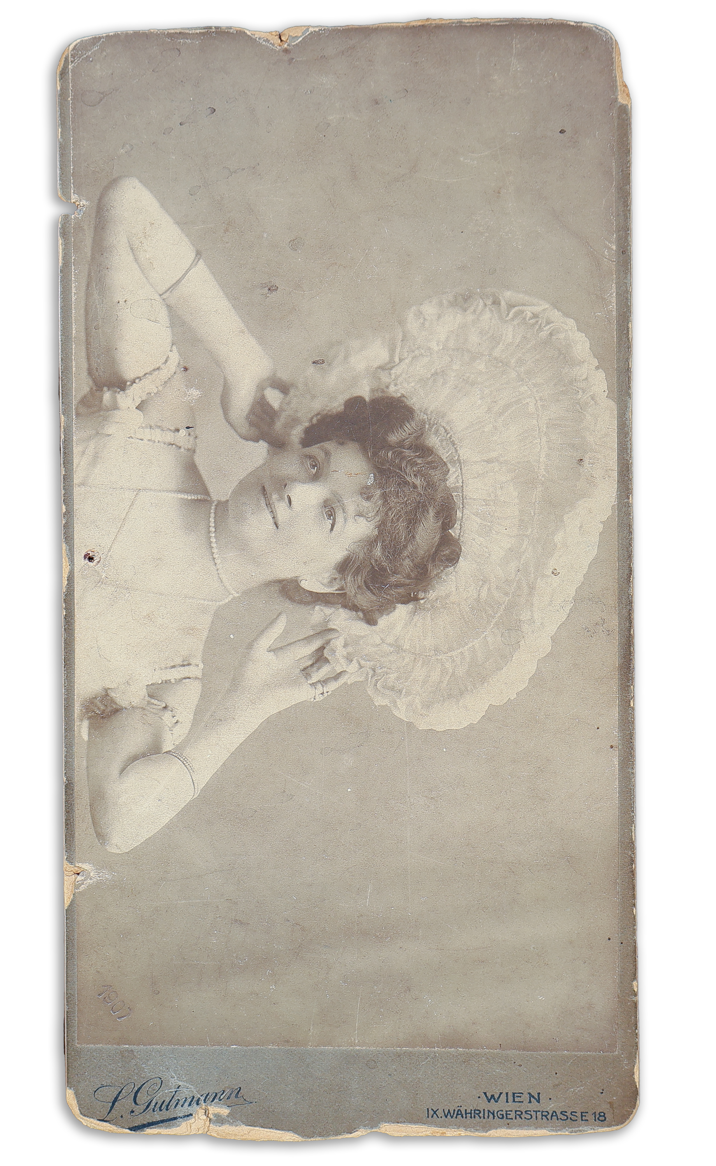 - Inkey Gizella primadonna egész alakos fényképe Goszleth István Kristóf téri, feliratozott műtermi kartonján, a színésznő sajátkezű aláírásával. Budapest, 1900.