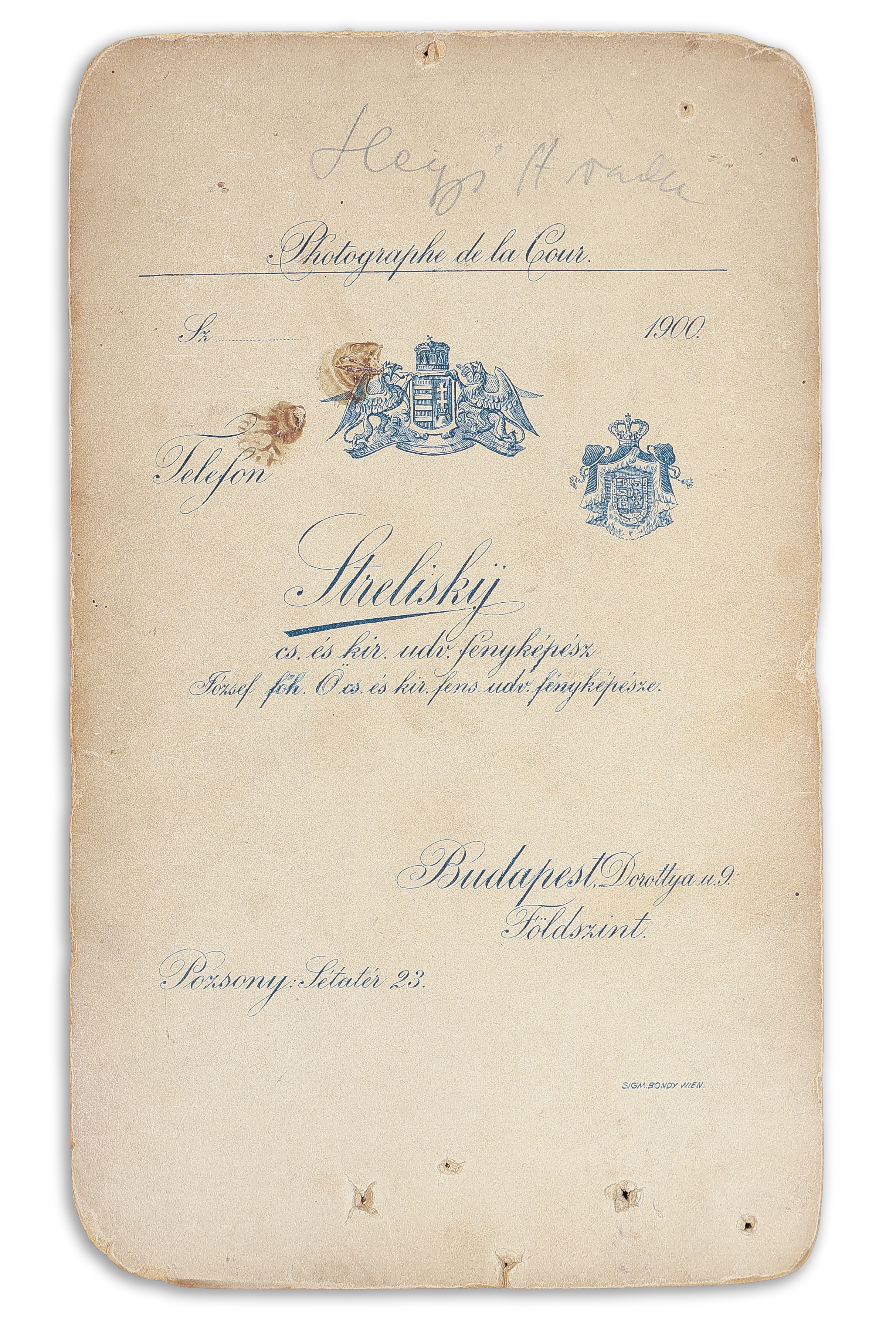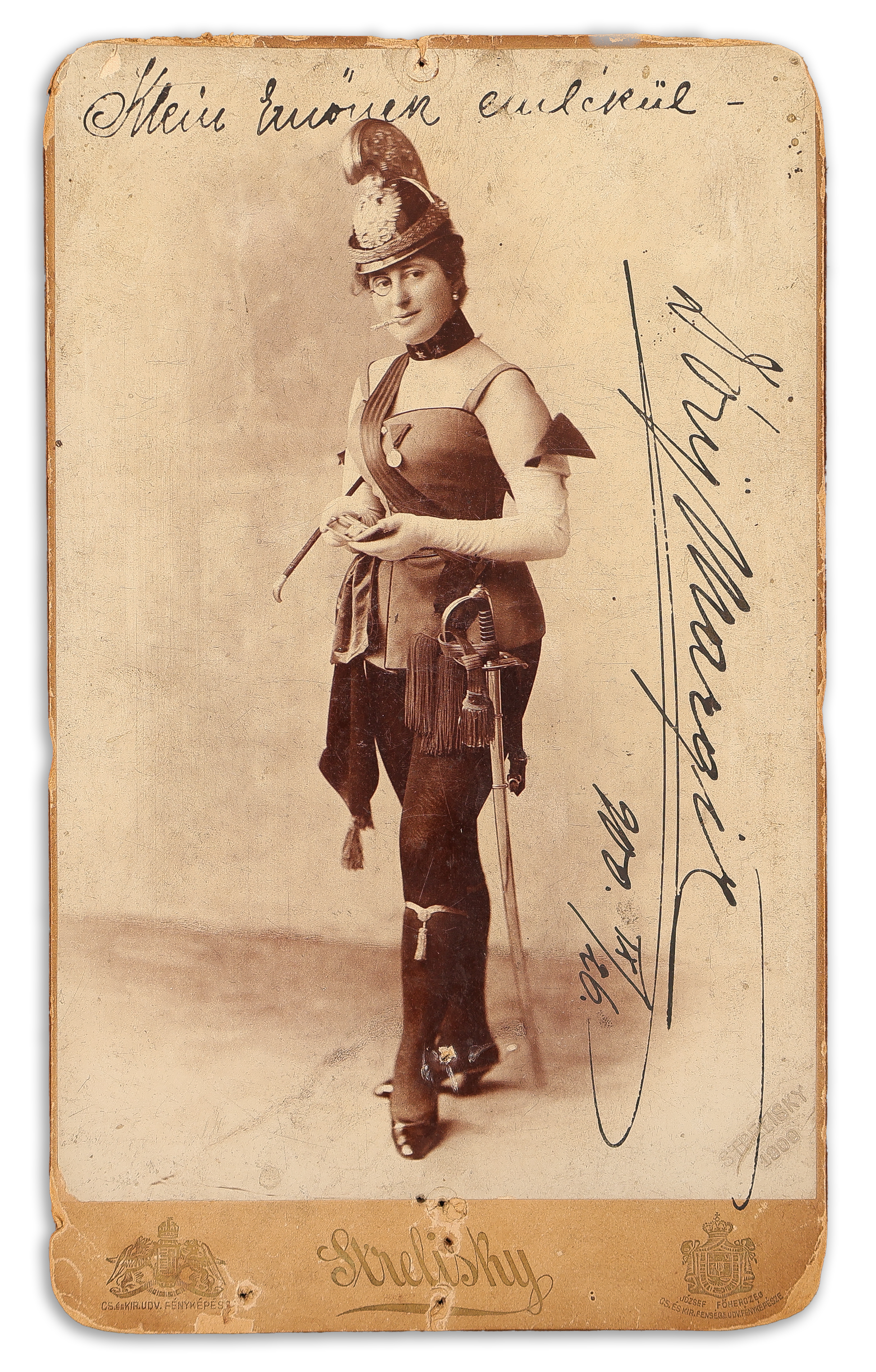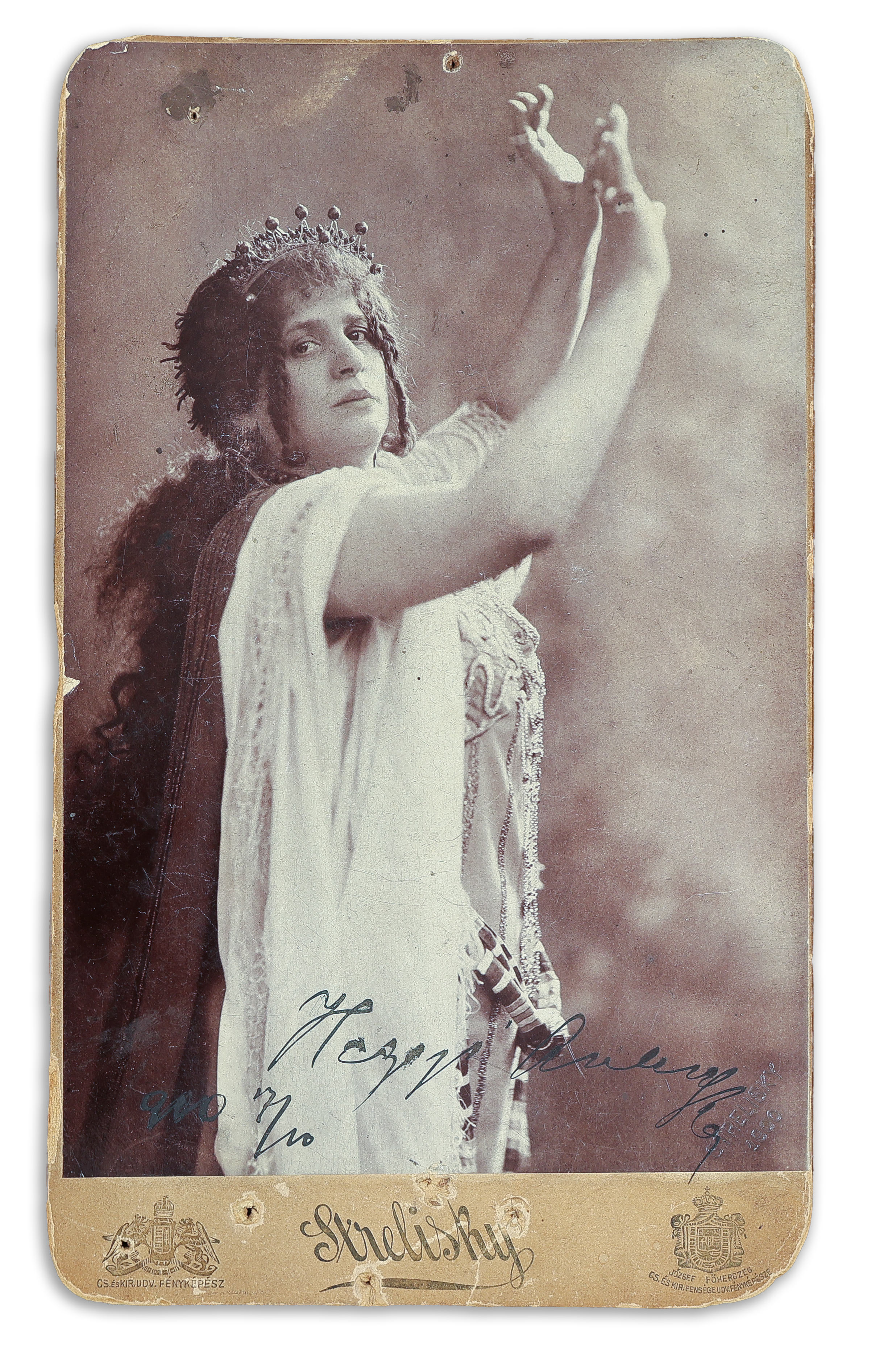 - Hegyi Aranka (1855-1906) színművész, operett- és dalénekesnő aláírt fényképe Strelisky, Dorottya utcai műtermi felvételén. Budapest, 1901.