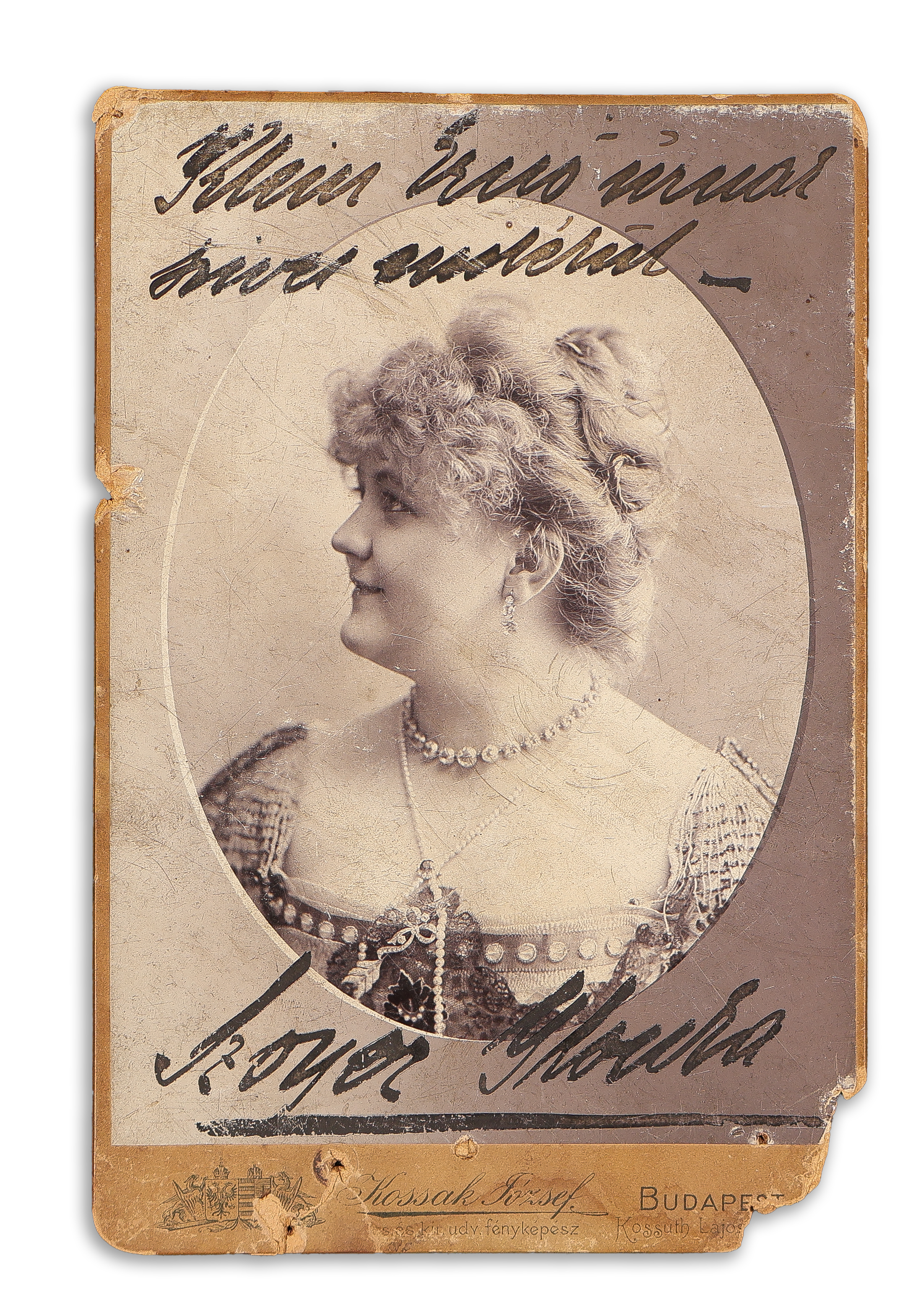 - Szoyer Ilonka (1879-1956) opera- és operett-énekesnő, primadonna egész alakos fényképe, autográf dedikációjával, Kossak József budapesti műterméből. Budapest, 1900 körül.