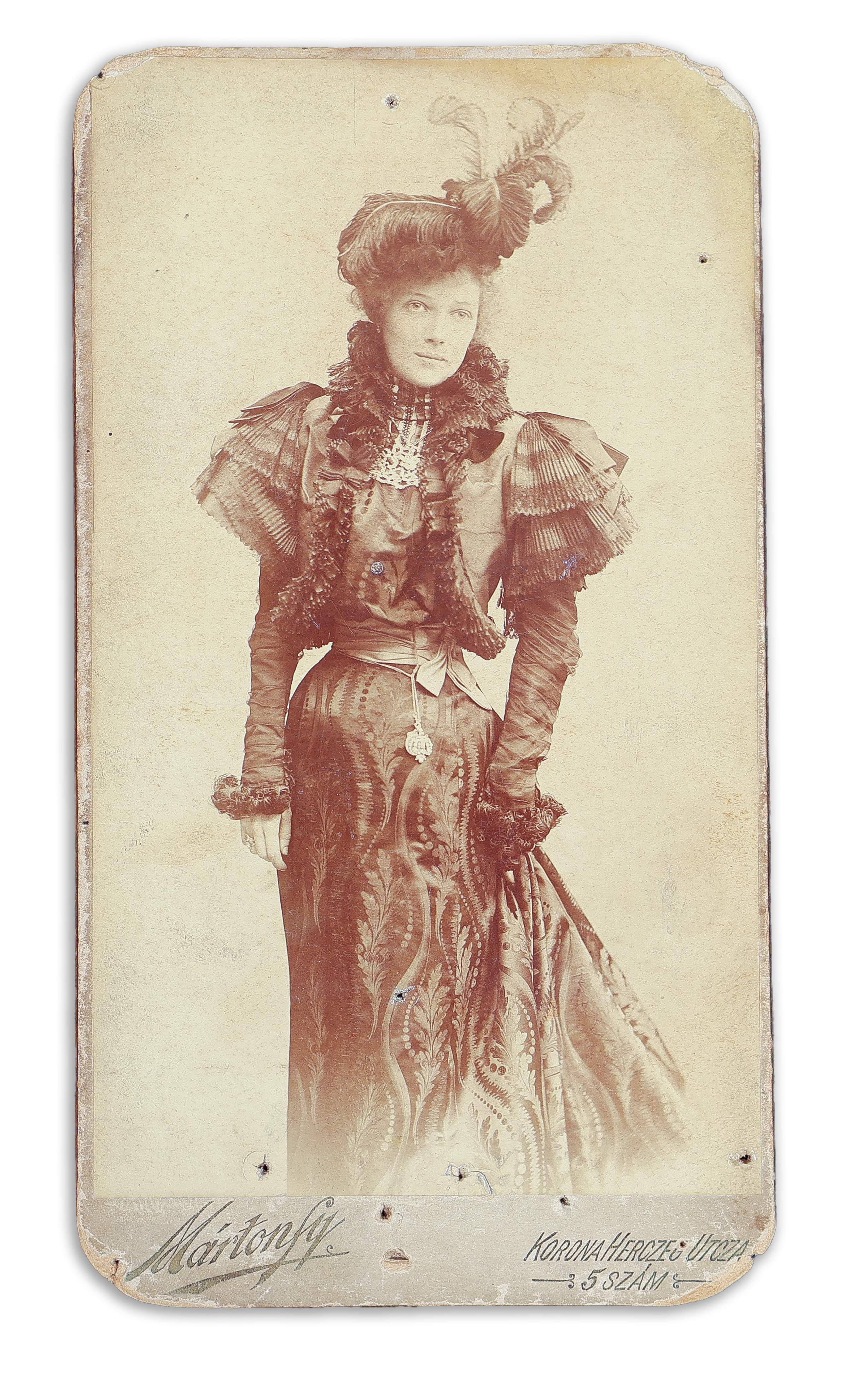 - Vízvári Mariska (1879-1954) színésznő, író egész alakos fényképe Mártonfy fényképészeti műterméből. Budapest, 1900.
