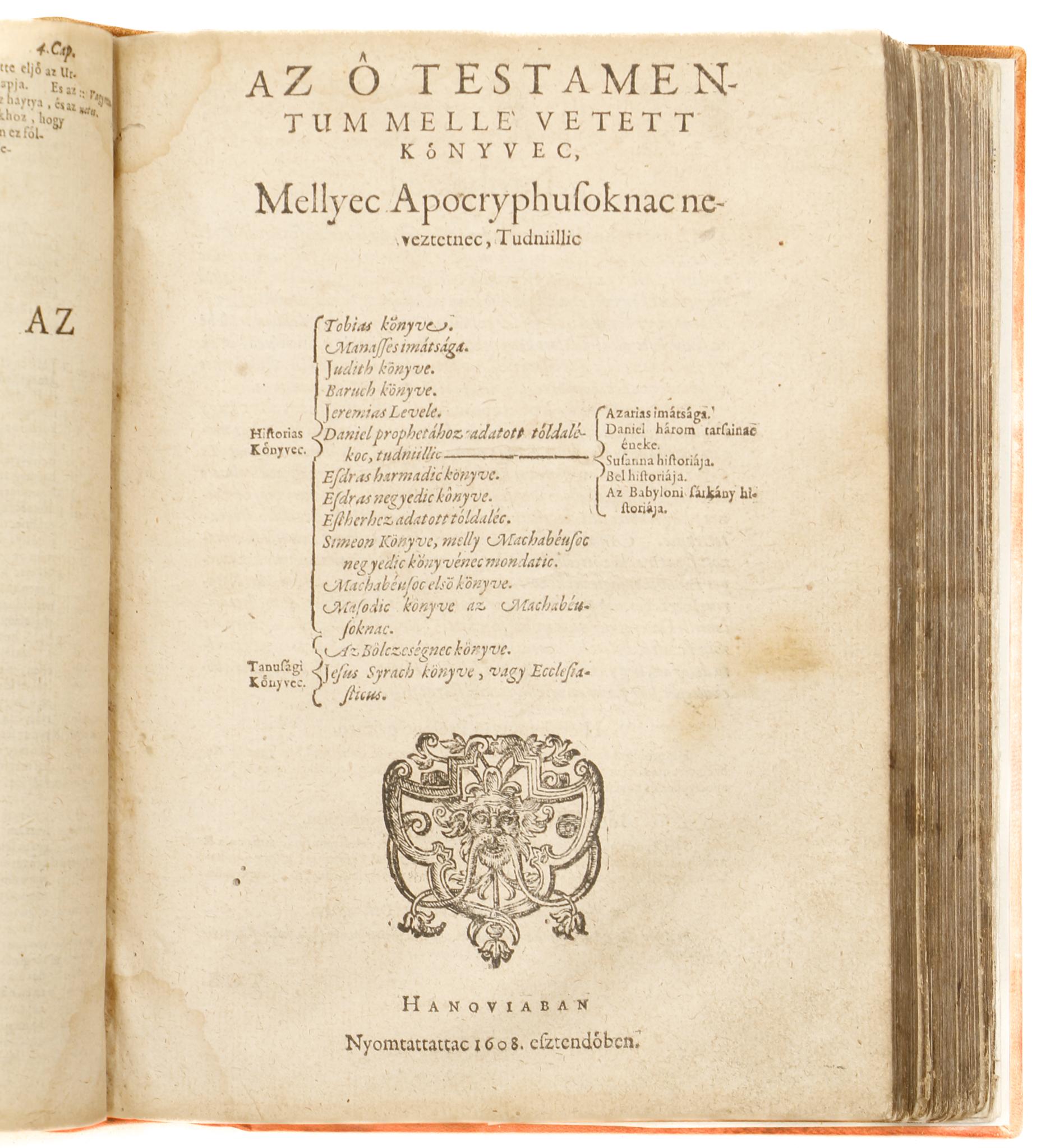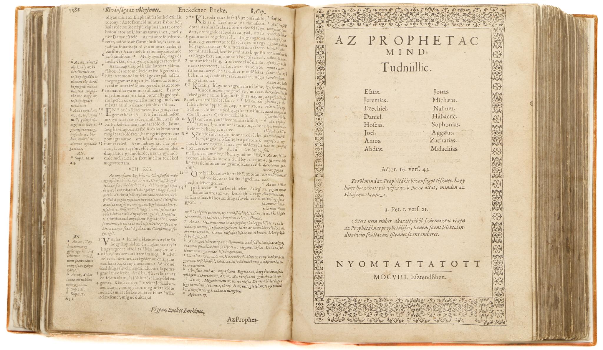 Szent Biblia, az az Istennec Ó es Uy Testamentomanac prophetac es apastaloc által megiratott szent könyvei.