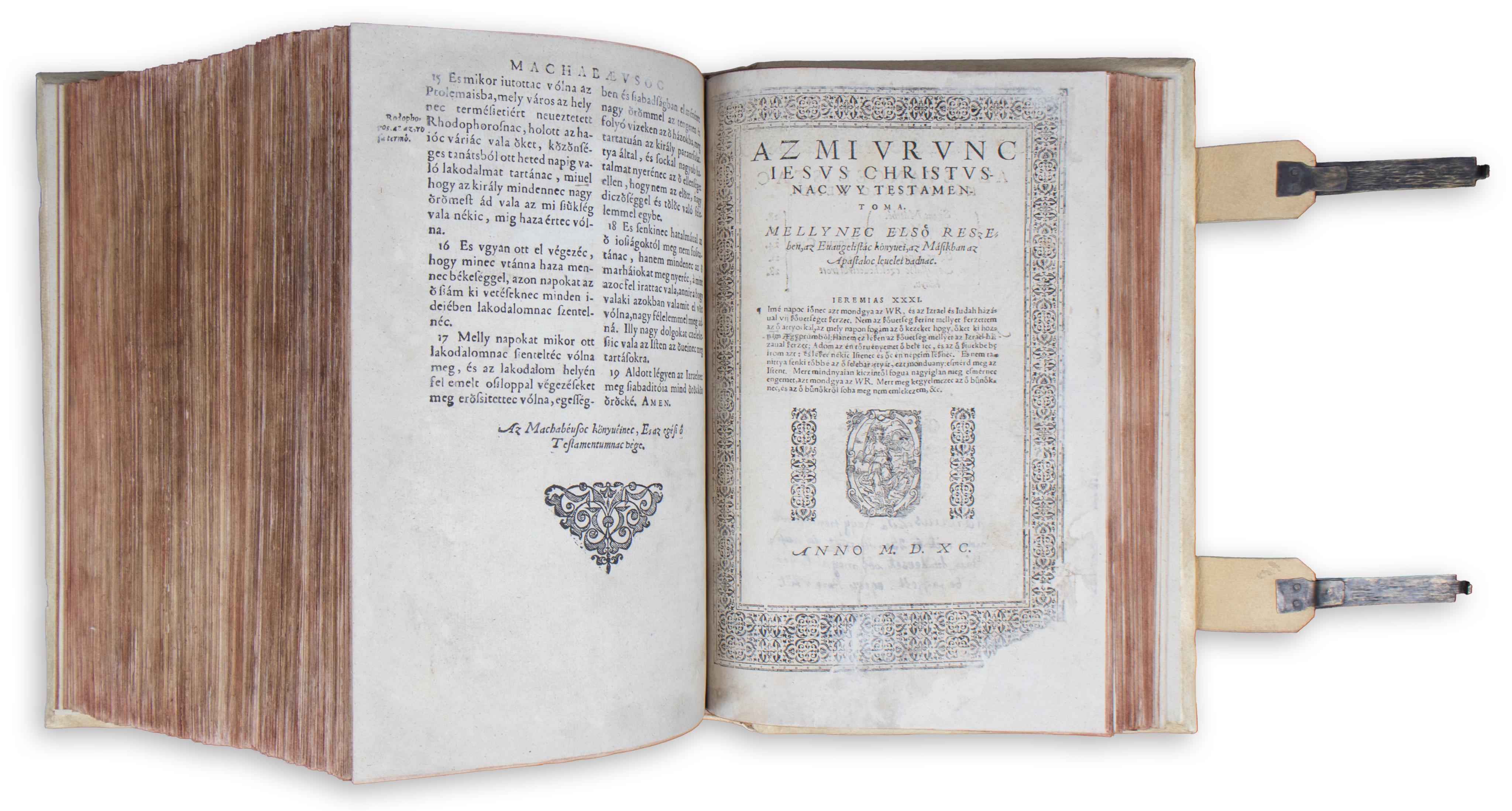 The printing took a year and a half and was completed on July 20, 1590. It likely required four presses, which made Vizsoly stand out among Hungarian printing workshops of the time. The book comprises 603 sheets, which represents the largest printing achievement in 16th-century Hungary. The print run is estimated in the scholarly literature at 700–800 copies. In early 1592, 20 Bibles were listed in Károli’s estate inventory. Although a relatively large number of copies have survived, most are very incomplete due to heavy use and popularity. According to the RMNy, there are currently three complete copies of the Vizsoly Bible in Hungarian public collections.
