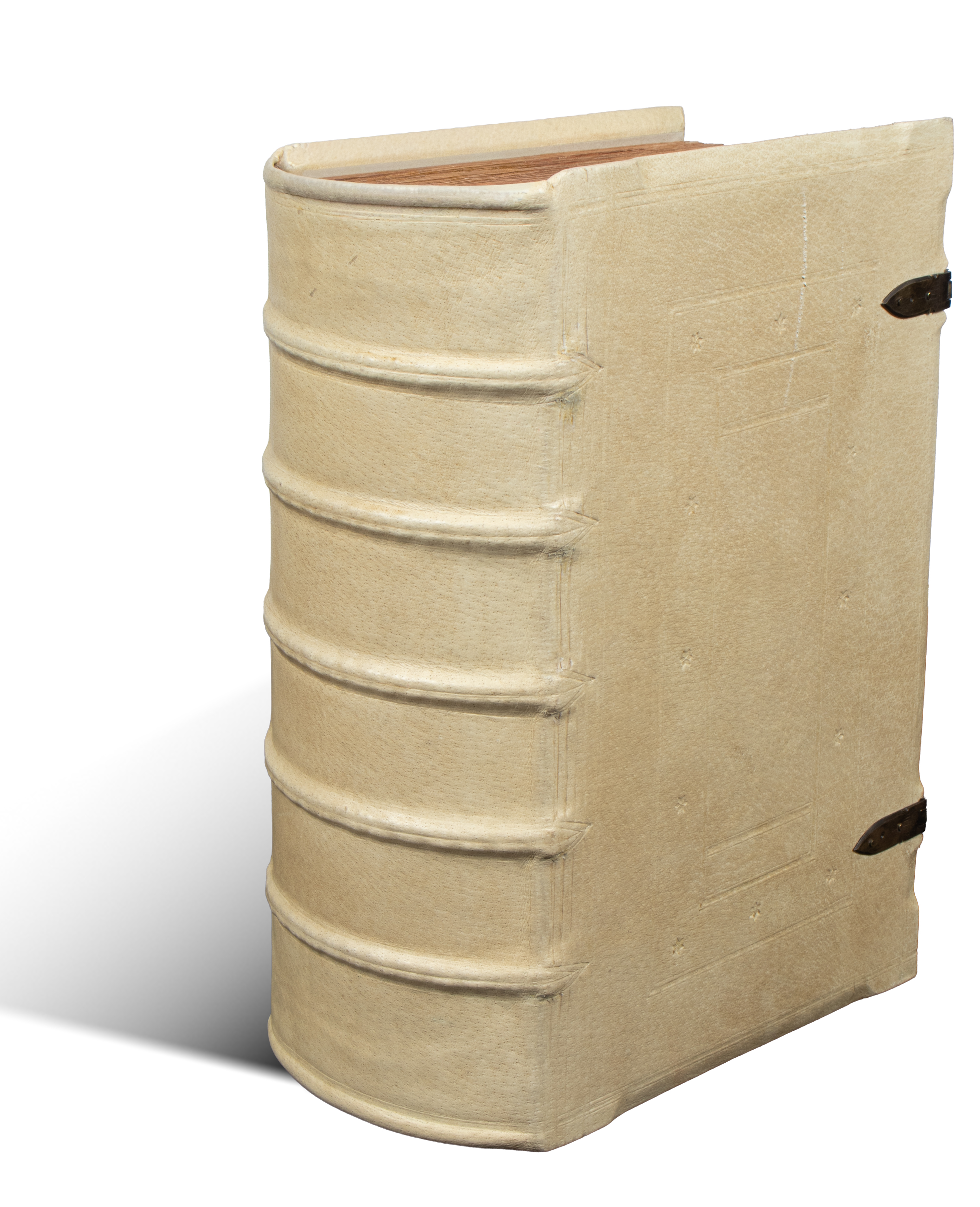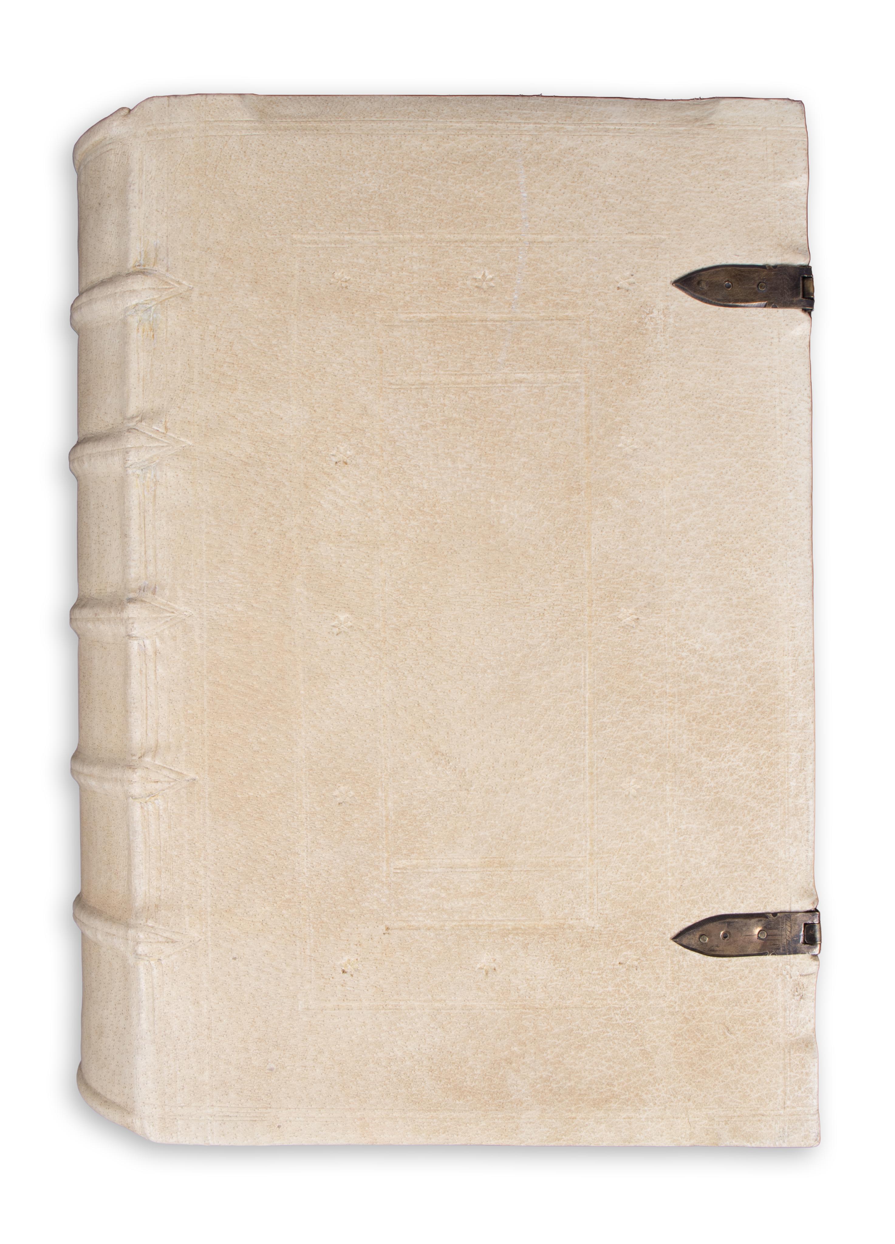 Bound in modern full leather with blind tooling, with clasps. Numerous leaves repaired.