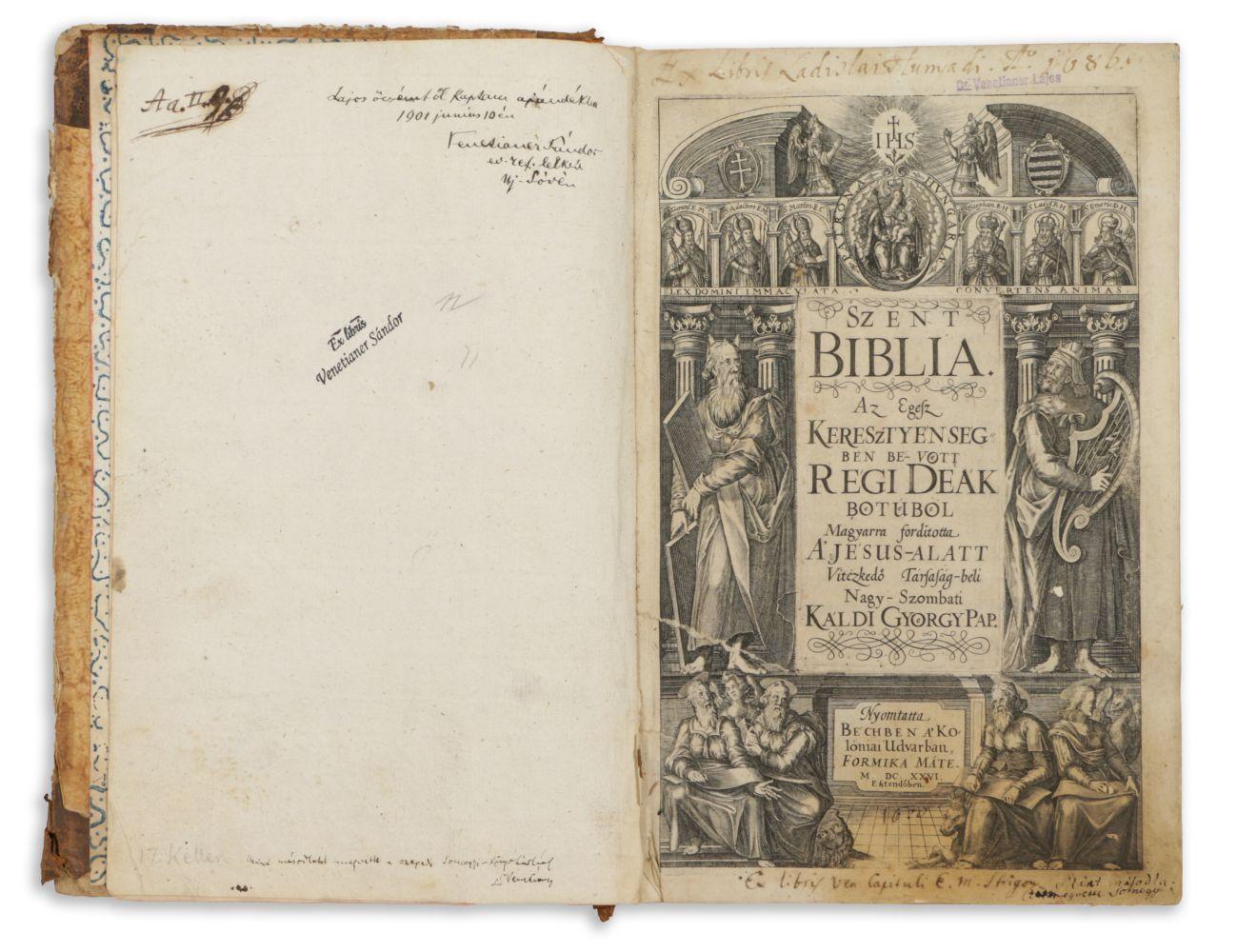 Az első teljes magyar nyelvű katolikus bibliafordítás első kiadása. Fordítója Káldi György jezsuita hitszónok és szentírásfordító. A bibliafordítás munkáját 1605-ben Pázmány Péter felszólítására kezdte, és első kéziratát, feltehetően korábbi fordításkísérletek felhasználásával, két év alatt készítette el. A végleges változat Pázmány, Bethlen Gábor, a bécsi kincstár és mások anyagi támogatásával jelent meg. A magyar nyelvre gyakorolt hatása a Károli-féle fordításéhoz mérhető: a későbbiekben, így a nyelvújítás korában maga Kazinczy Ferenc a lehető legnagyobb elismeréssel beszélt Káldiról – a Káldi Biblia tulajdonképpen ekkor foglalta el méltó helyét a magyar irodalmi nyelv kialakulásában. A végleges változat Pázmány, Bethlen Gábor, a bécsi kincstár és mások anyagi támogatásával jelent meg. Az első katolikus Biblia többször megújított szövegéből vették a legújabb időkig a katolikus istentisztelet hivatalos szentírási szakaszait, perikopáit. A XX. század közepéig használták, több kiadást megért.