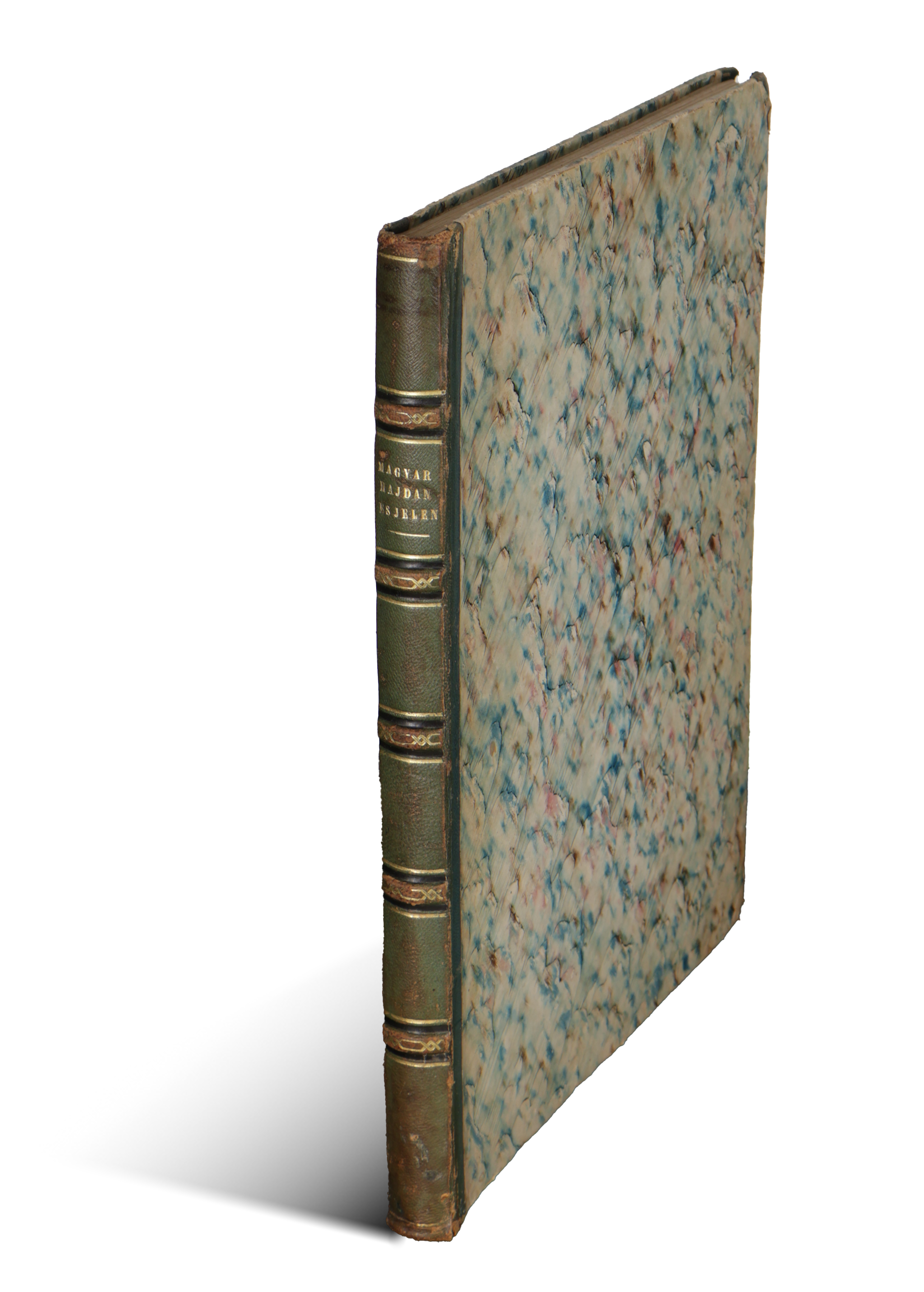 Egykorú, ízléses, bordázott gerincű zöld félbőrkötésben, aranyozott felirattal, a lapszéleken halvány erezett mintával. Néhány tábla kissé foxing foltos. 32,9 cm.
