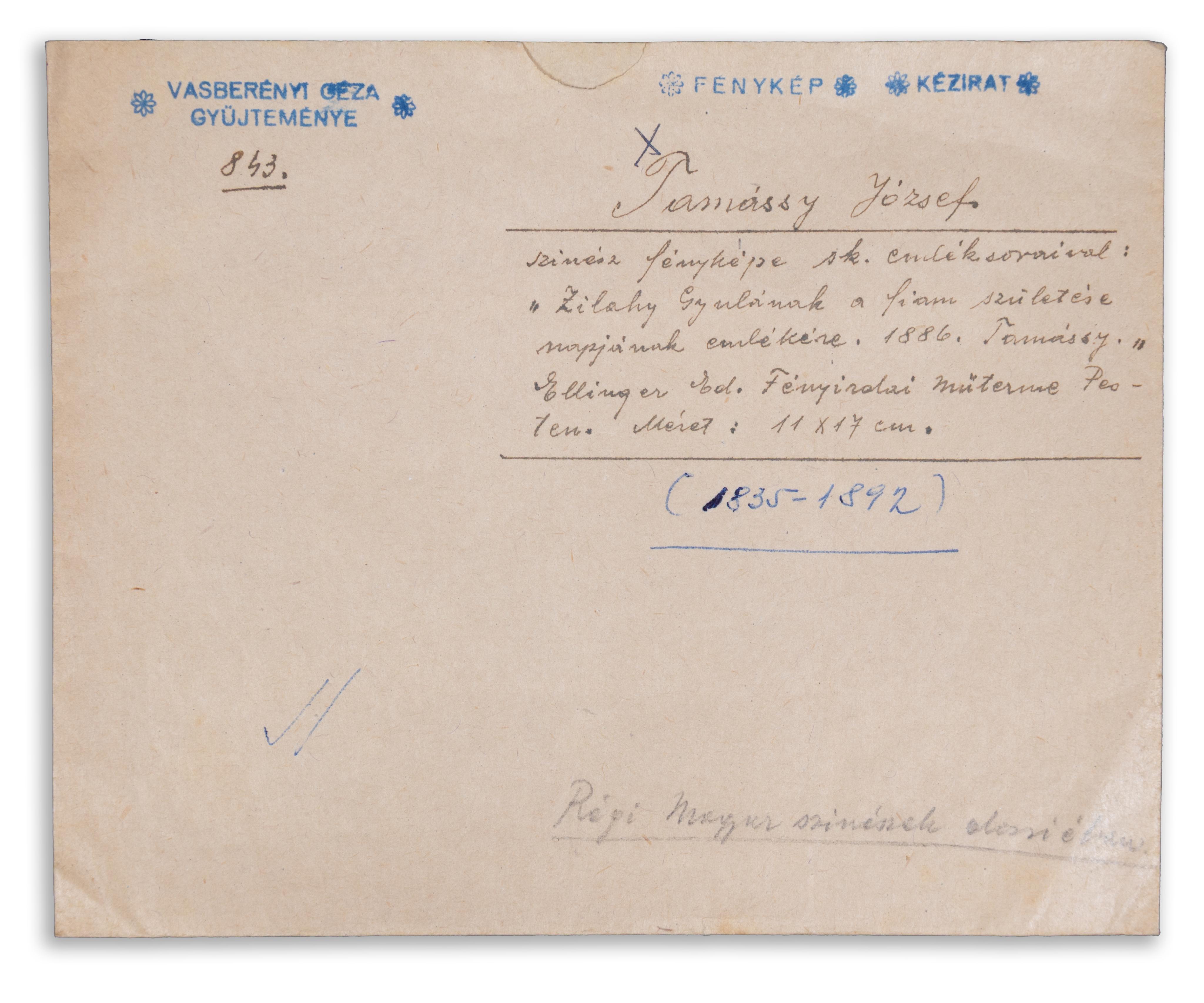 A fénykép hátoldalán a színész Zilahy Gyulának szóló saját kezű dedikációja látható, melyet fia születése napjának emlékére írt.
