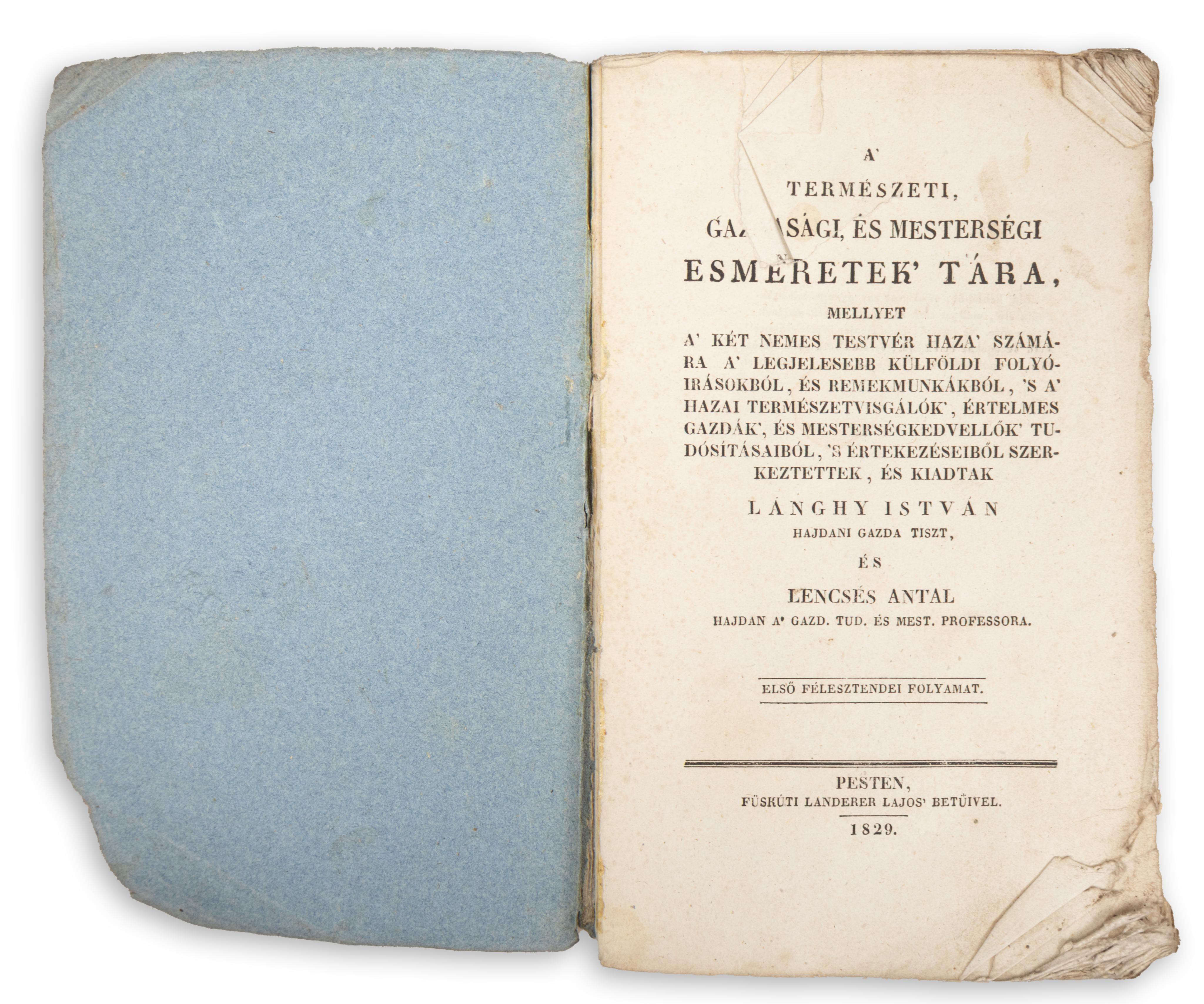 Pesten, 1829, Füskúti Landerer Lajos’ betűivelA’ természeti, gazdasági és mesterségi esmeretek’ tára, mellyet a’ két nemes testvér haza’ számára, a’ legjelesebb külföldi folyóírásokból, és remekmunkákból, ’s a’ hazai természetvizsgálók’, értelmes gazdák’, és mesterségkedvellők’ tudósításaiból, ’s értekezéseiből szerzettek és kiadtak Lánghy István és Lencsés Antal.