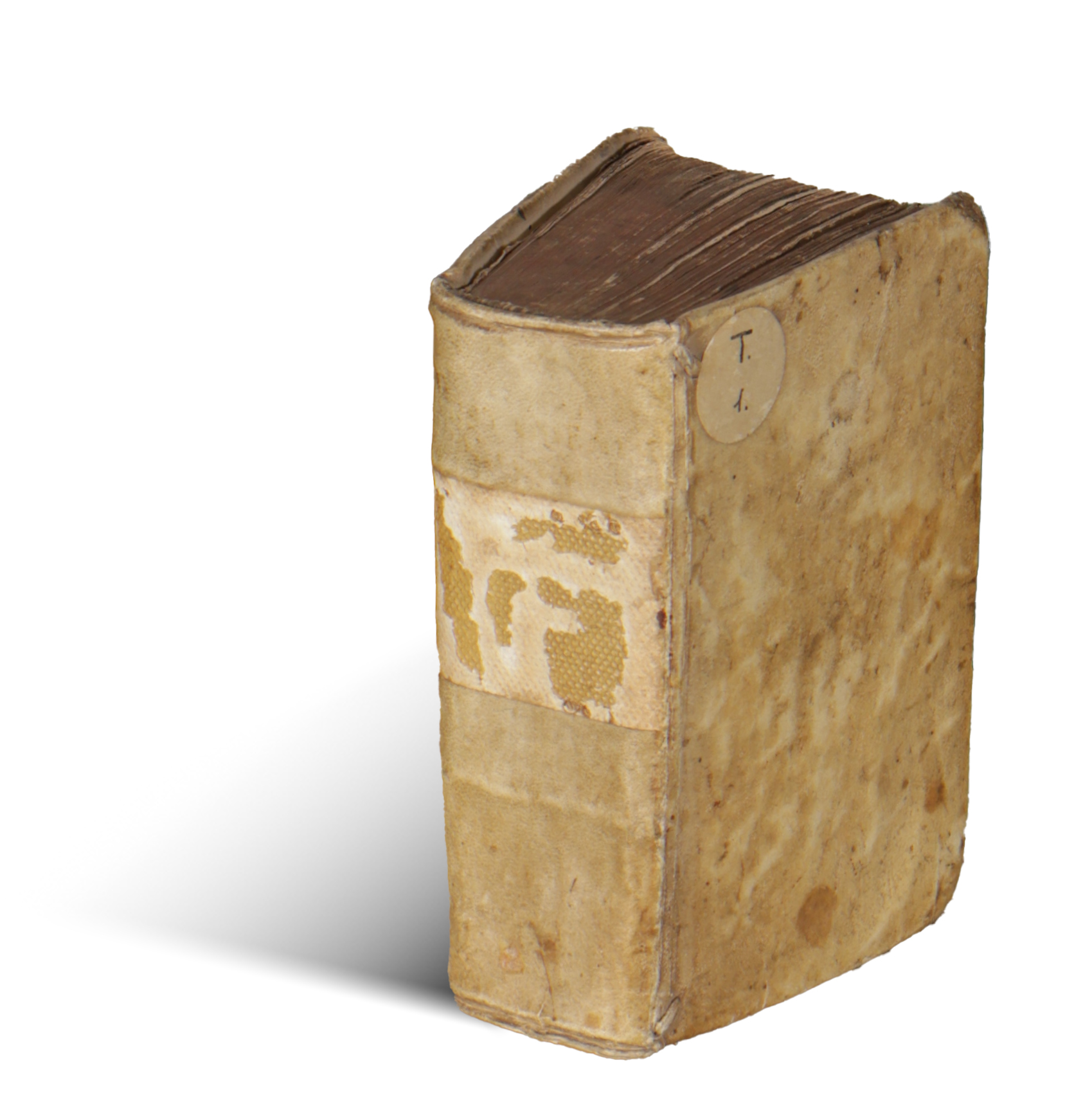 Korabeli pergamenkötés, a gerincen lekopott aranyozott címvignetta. Szép állapotban lévő példány.