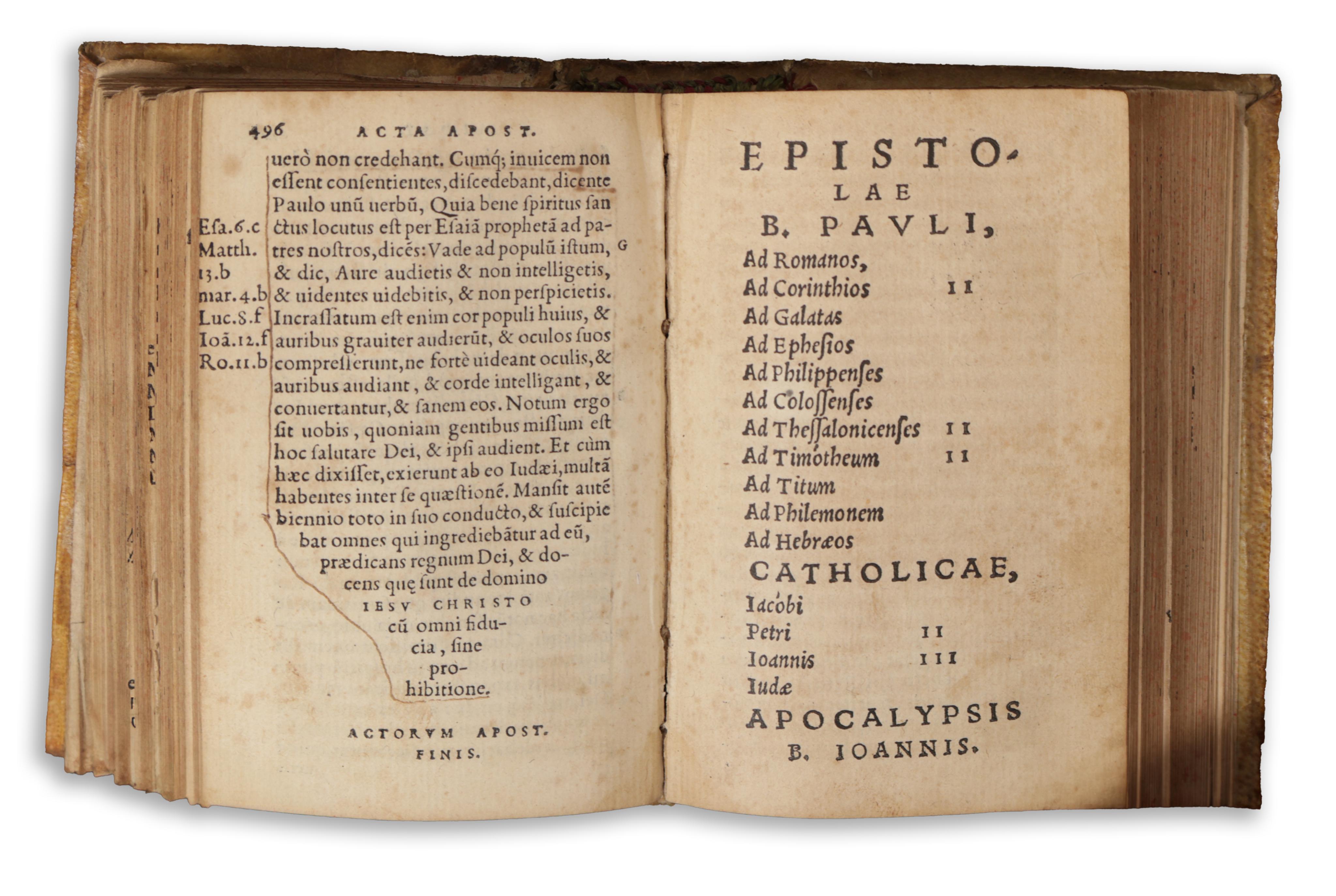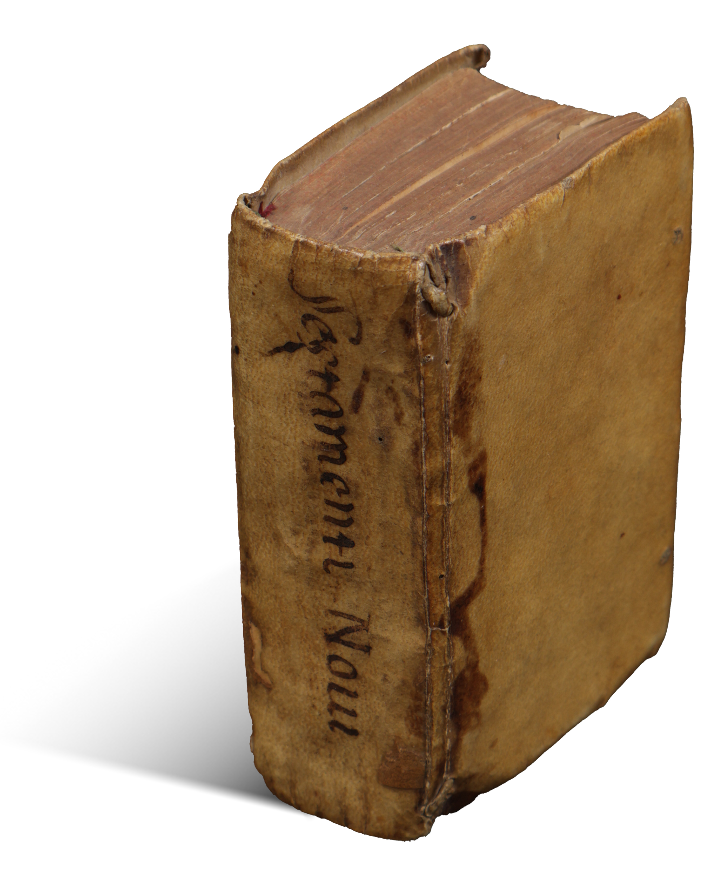 Contemporary full vellum binding, inscription Testamenti Noui on spine. Numerous ink underlinings on the leaves. Two 19th-cent. postmark stamps at the end. One by Giovanni Bianchi. USTC No:126288