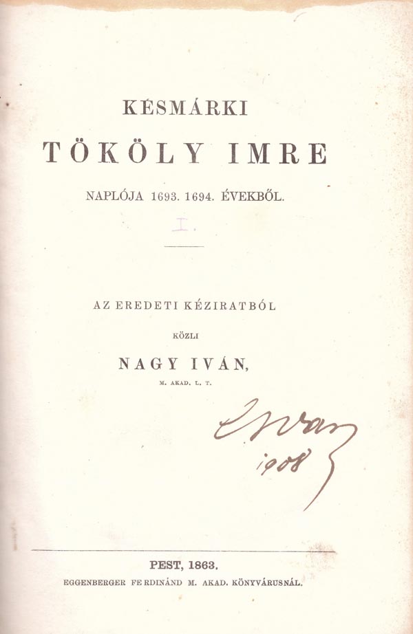 Késmárki Thököly Imre és némely főbb híveinek naplói és emlékezetes irásai 1686-1705. Közli Thaly Kálmán.