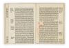 1481 Nürnberg24 folios (a8, b8, c8), with paper flyleaves; the first and last folios are blank. Set in Gothic type with 32 lines per page. On the first (blank) leaf is a likely 19th-century entry in red ink: "Incunabula no. 5 (1481)". The copy is heavily trimmed, with signatures cut off on several pages and a few letters missing from the references at the edges. There is a progressively fading water stain at the bottom near the binding, but overall it is a fine, clean copy. Housed in a later cardboard binding with a title label on the front cover.