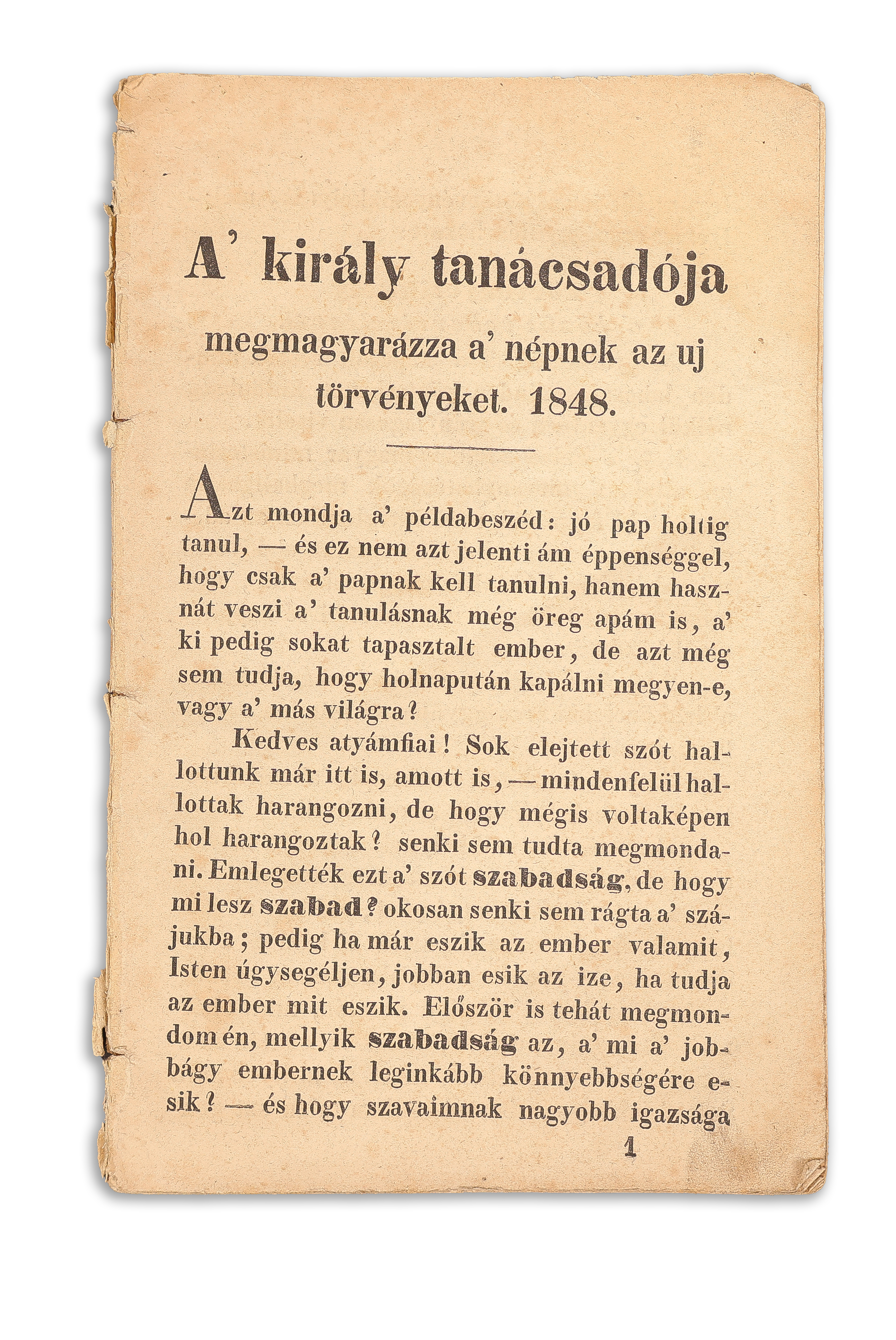 1848 Budán, Magyar Kir. EgyetemBudán, 1848. a magyar kir. egyetemi ny. 52 p. Szerző megjelölése nélkül jelent meg.