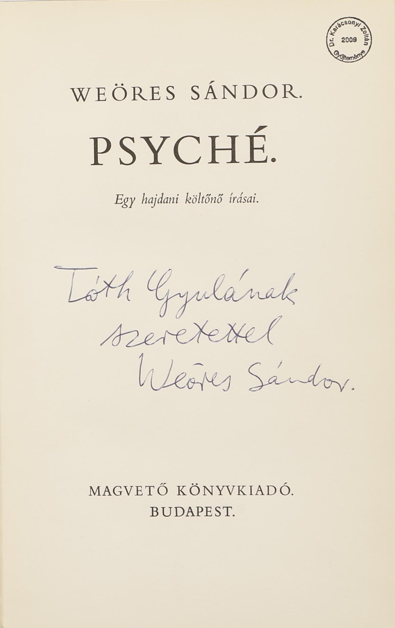 Dedikált: "Tóth Gyulának szeretettel Weörös Sándor"