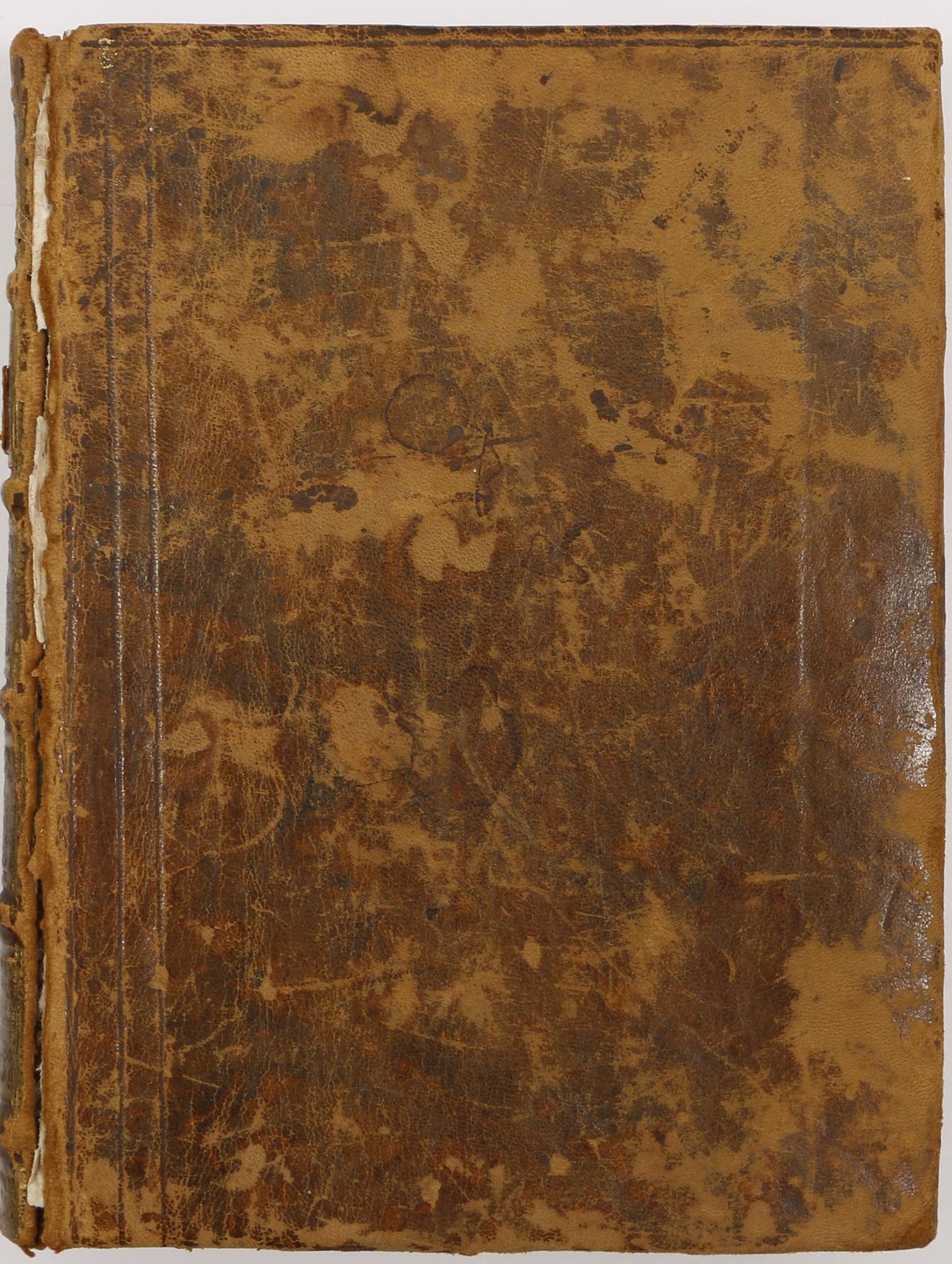 Later full leather binding with gilt, ribbed spine, painted edges. Front board detached.