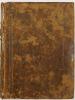 Későbbi, aranyozott, bordázott gerincű egészbőr kötésben, festett lapszélekkel. Az első tábla levált.