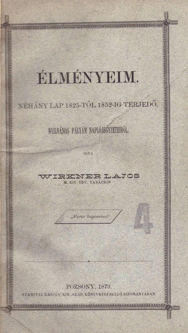 Élményeim. Néhány lap 1825-től 1852-ig terjedő, nyilvános pályám naplójegyzeteiből.