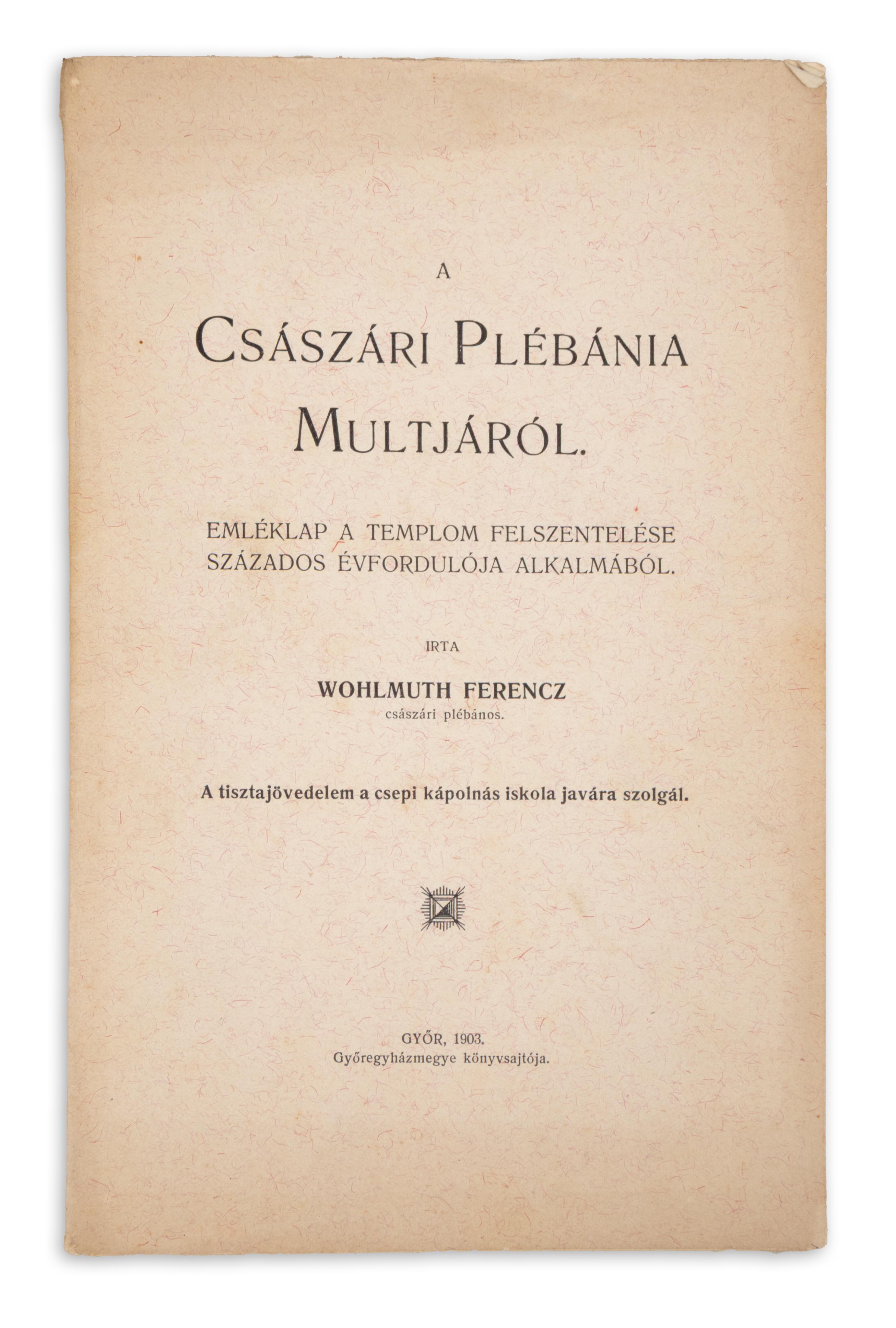 A császári plébánia multjáról. Emléklap a templom felszentelése százados évfordulója alkalmából.