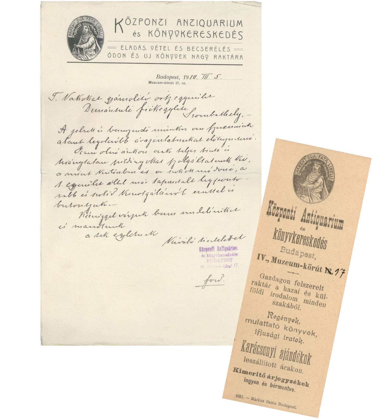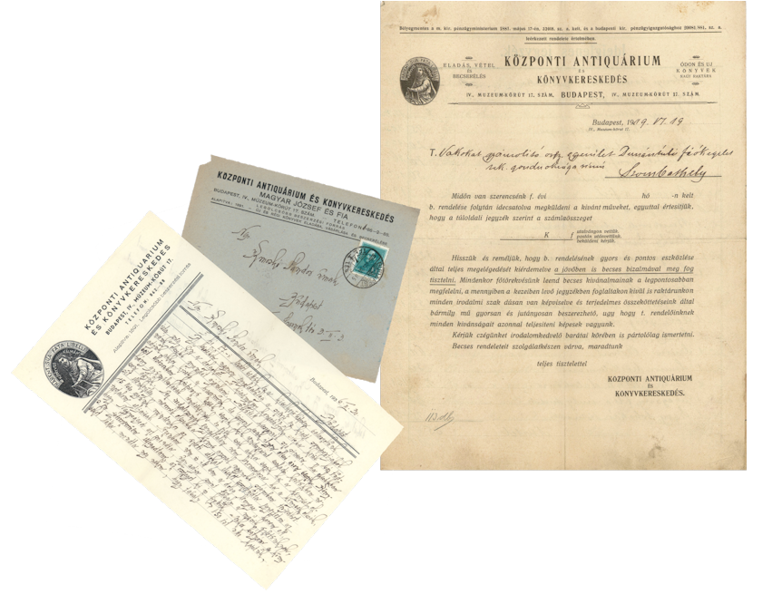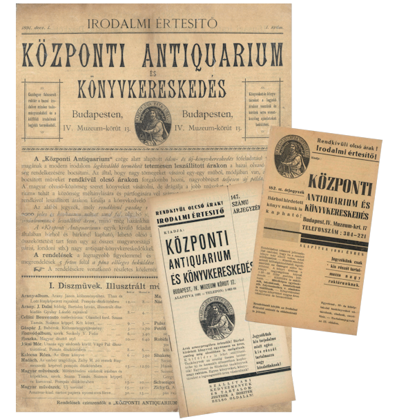Magyar József, aki Révai Sámuel tanítványaként Eperjesen sajátította el az antikváriusi-könyvkereskedői szakmát, 1891-ben alapította antikváriumát a Múzeum körút 13. szám alatt, melynek a „Központi Antiquarium és Könyvkereskedés" nevet adta. Az egyetemek környéke már akkor az egyik fő színtere volt az antikvár könyvkereskedésnek. A mai Kossuth Lajos utca sarkán helyezkedett el Ruzicska Ármin antikvárius boltja, a környéken nyitotta meg kapuit Rozsnyai Károly üzlete, Kun Dániel és Pfeiffer Manó kereskedése, Mai Henrik orvosi könyvekkel foglalkozó szaküzlete, a Kecskeméti utcában Politzer Zsigmond jogi könyvesboltja, az Üllői út közelében lakók pedig Müller hatalmas könyvkészletéből válogathattak.
