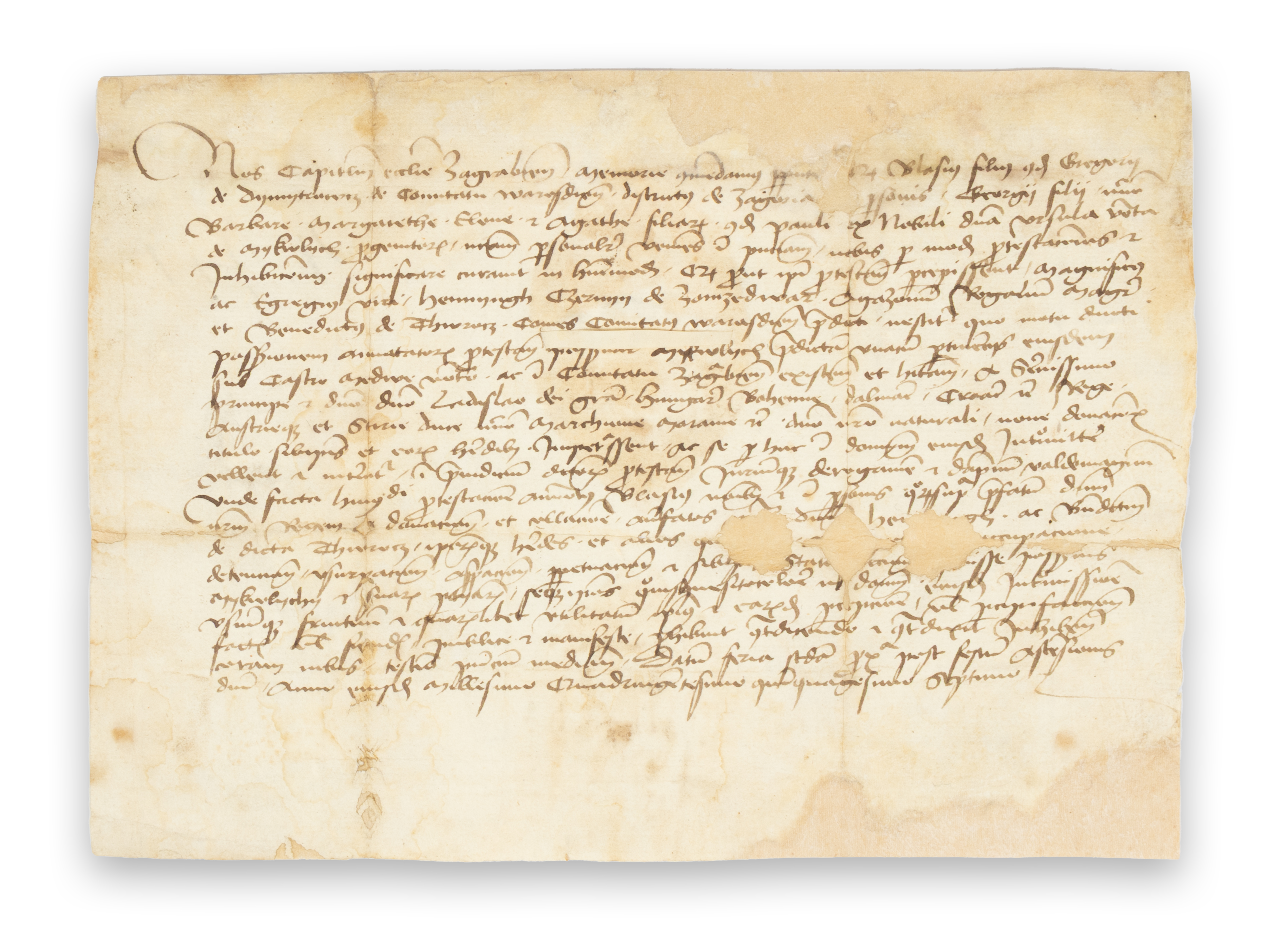 Paper, restored, with minor damages affecting the Latin text. With a fragment of the Chapter seal on the back.