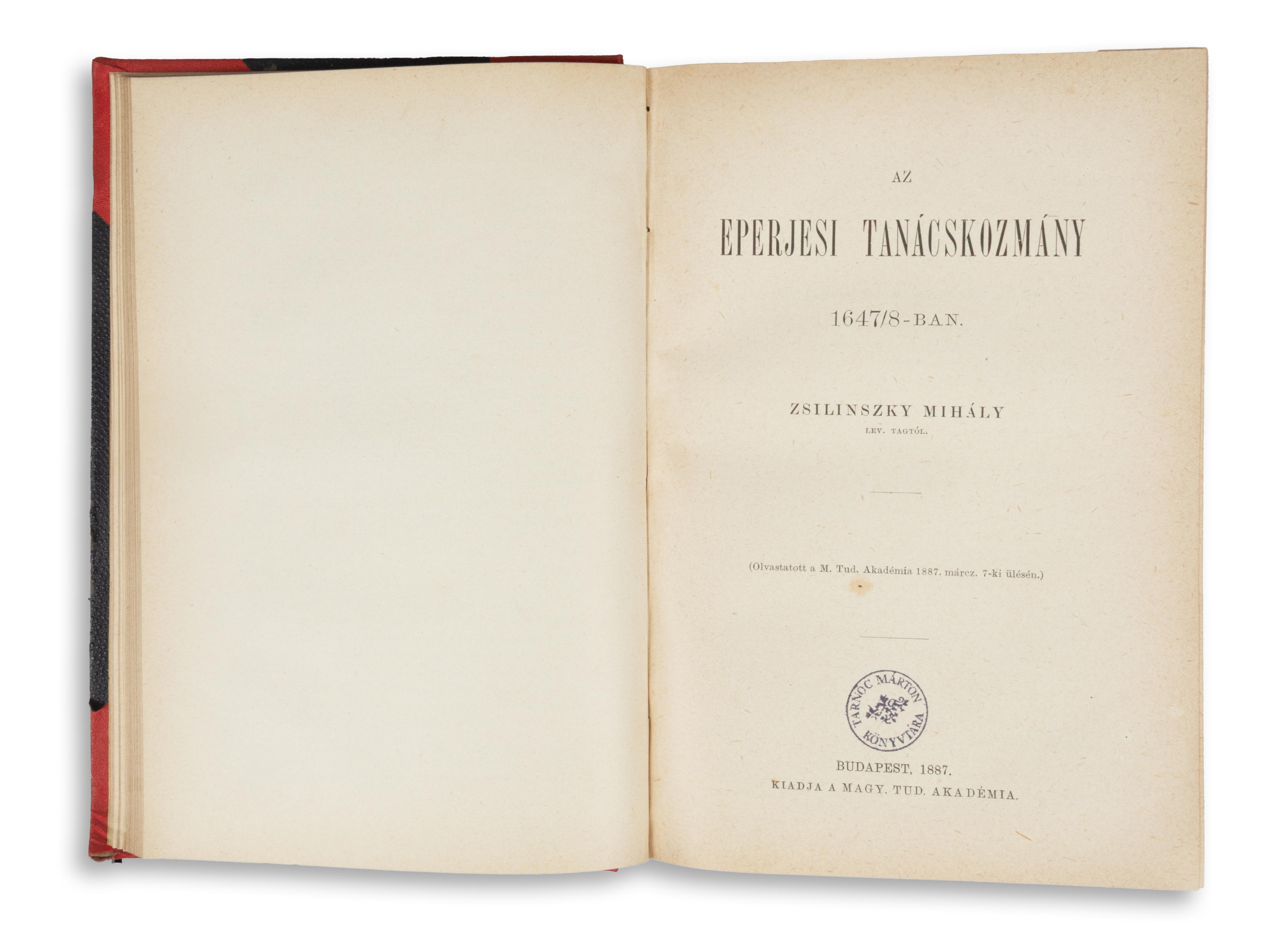 Zsilinszky Mihály - Az eperjesi tanácskozmány 1647/48-ban. Bp. 1887. MTA. [Athenaeum] 54 p.