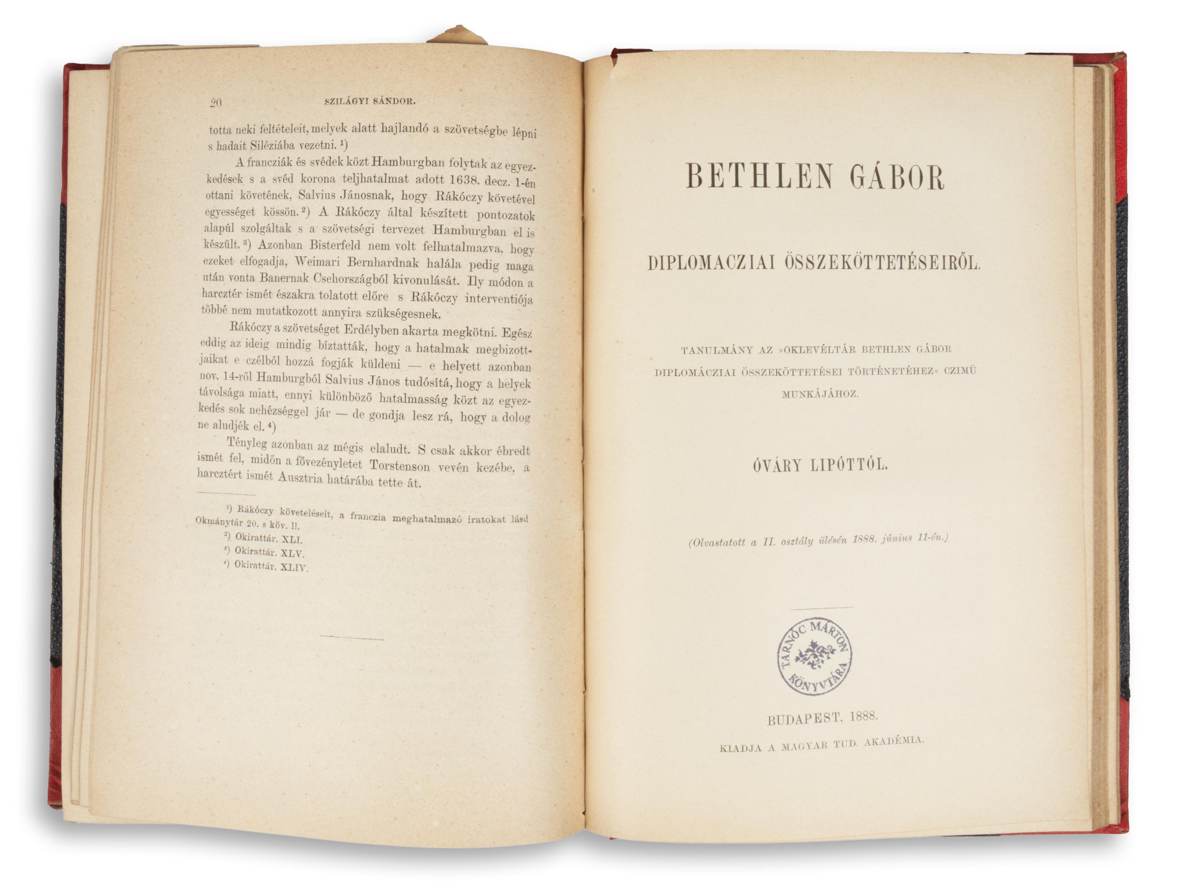 Óváry Lipót - Bethlen Gábor diplomacziai összeköttetéseiről. Bp. 1888. MTA [Athenaeum] 86 p.