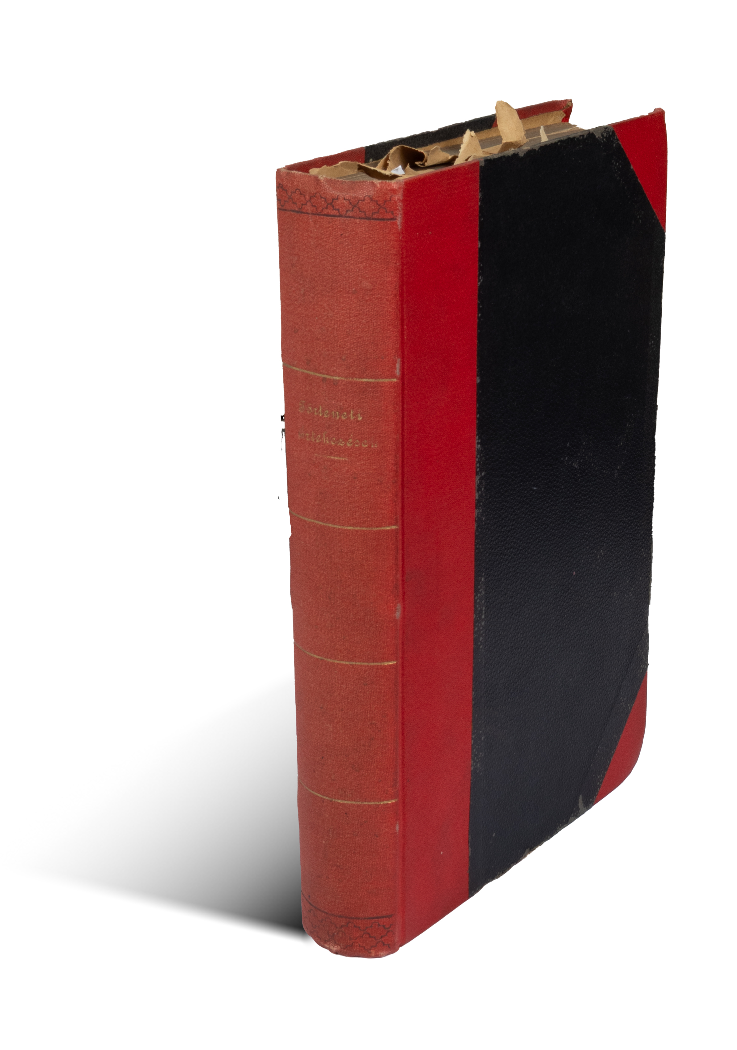 A 9 tanulmány, székfoglaló dokumentum egybekötve, 20. század eleji félvászon kötésben, Történeti értekezések címmel. Az utolsó üres levélen korabeli tintás tartalomjegyzék. Tarnóc Márton gyűjteményi bélyezőjével.