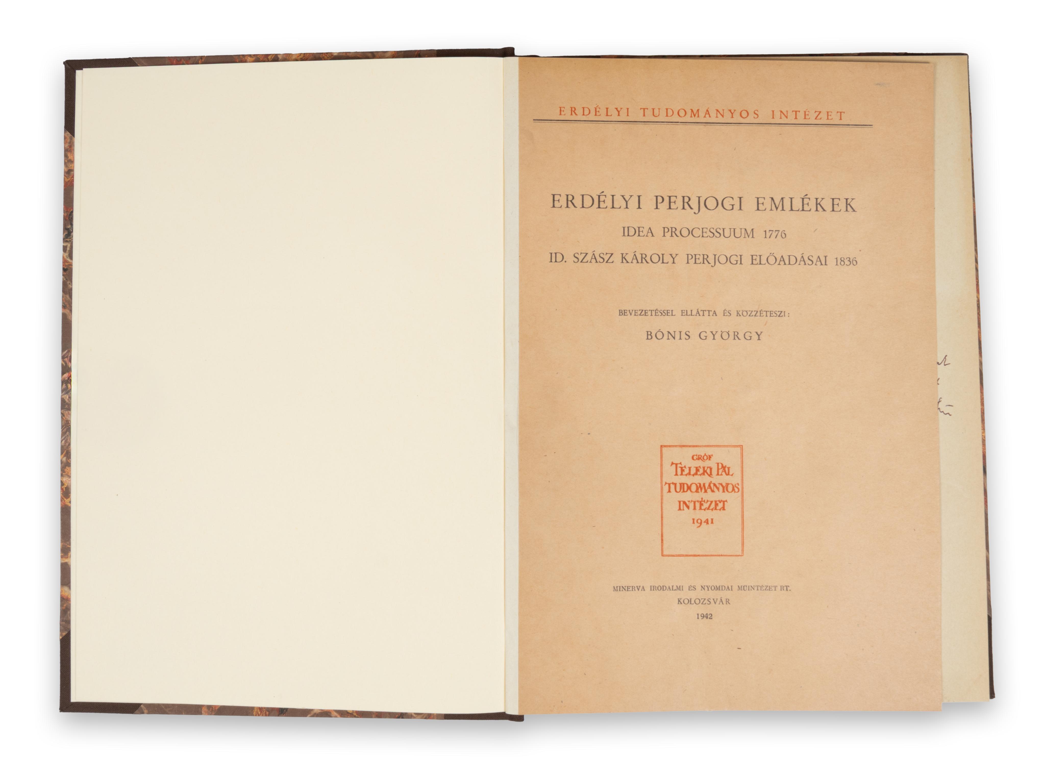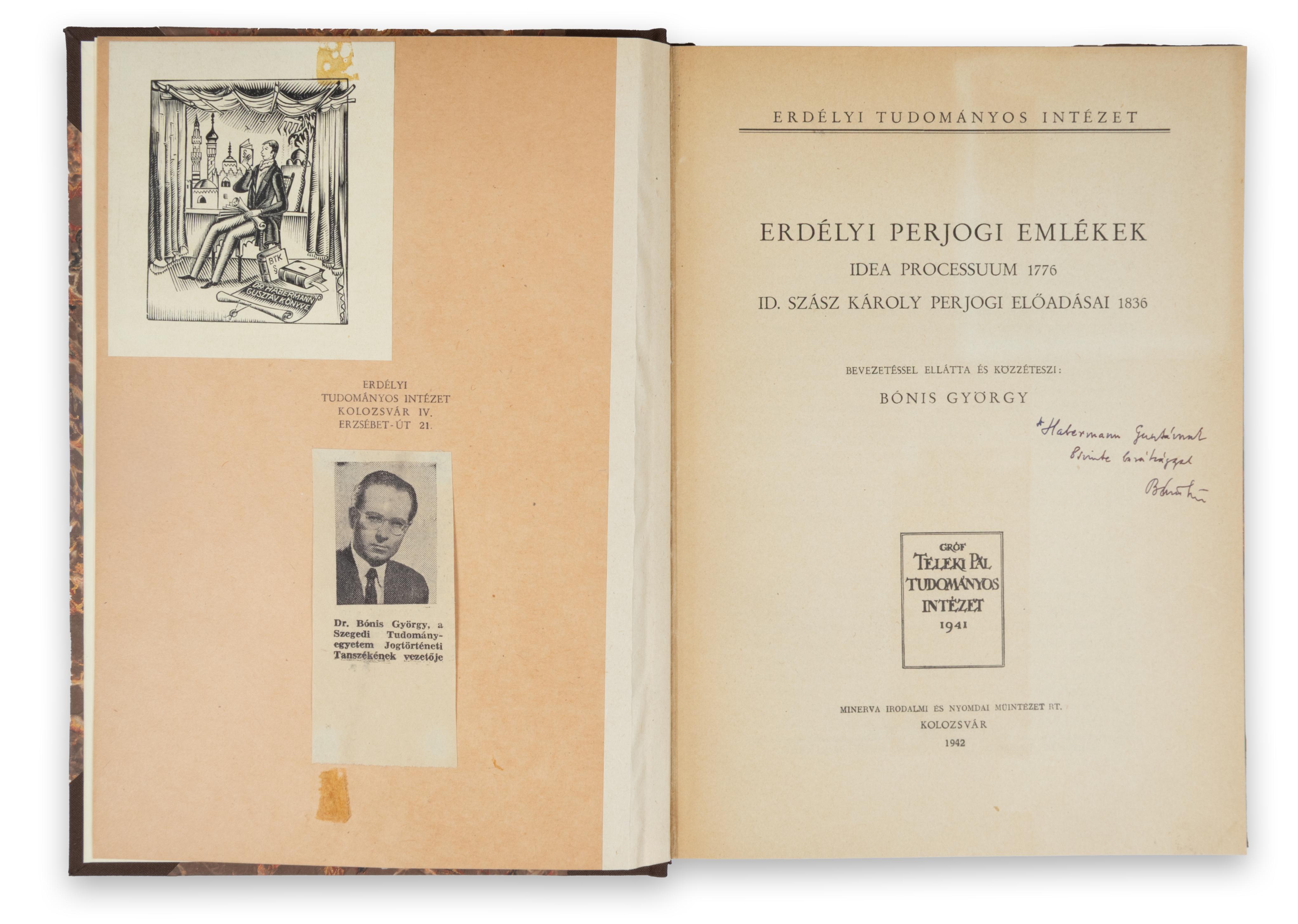 Bevezetéssel ellátta és közzéteszi: - -. [2] + XXIV + [2] + 157 p. Gróf Teleki Pál Tudományos Intézet 1941 kiadványa. Címlapján Dr. Habermann Gusztávnak dedikálva!
