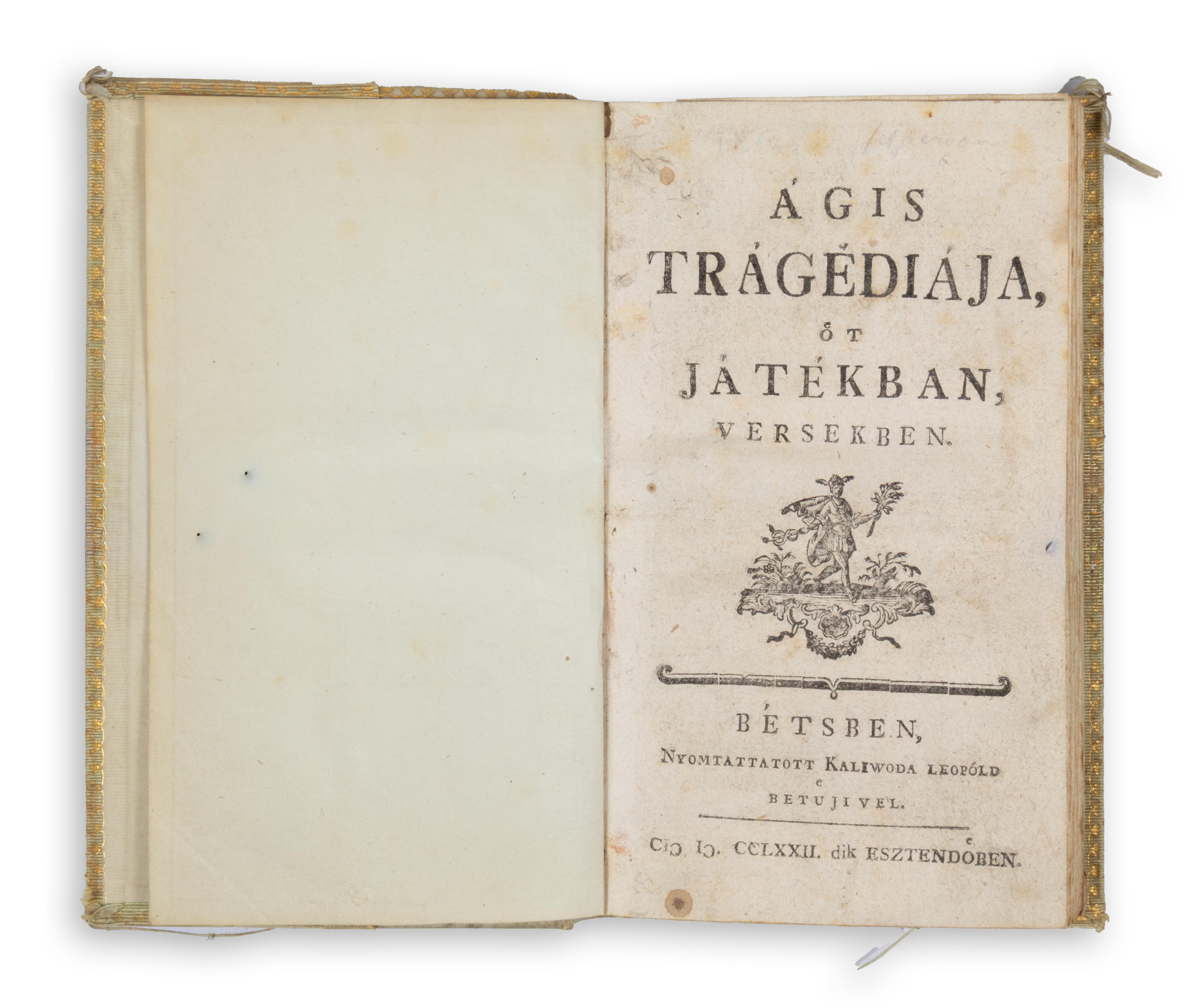 Bétsben, 1772, Kaliwoda Leopóld betüjivel158 p. Becses, ritka, első kiadás.