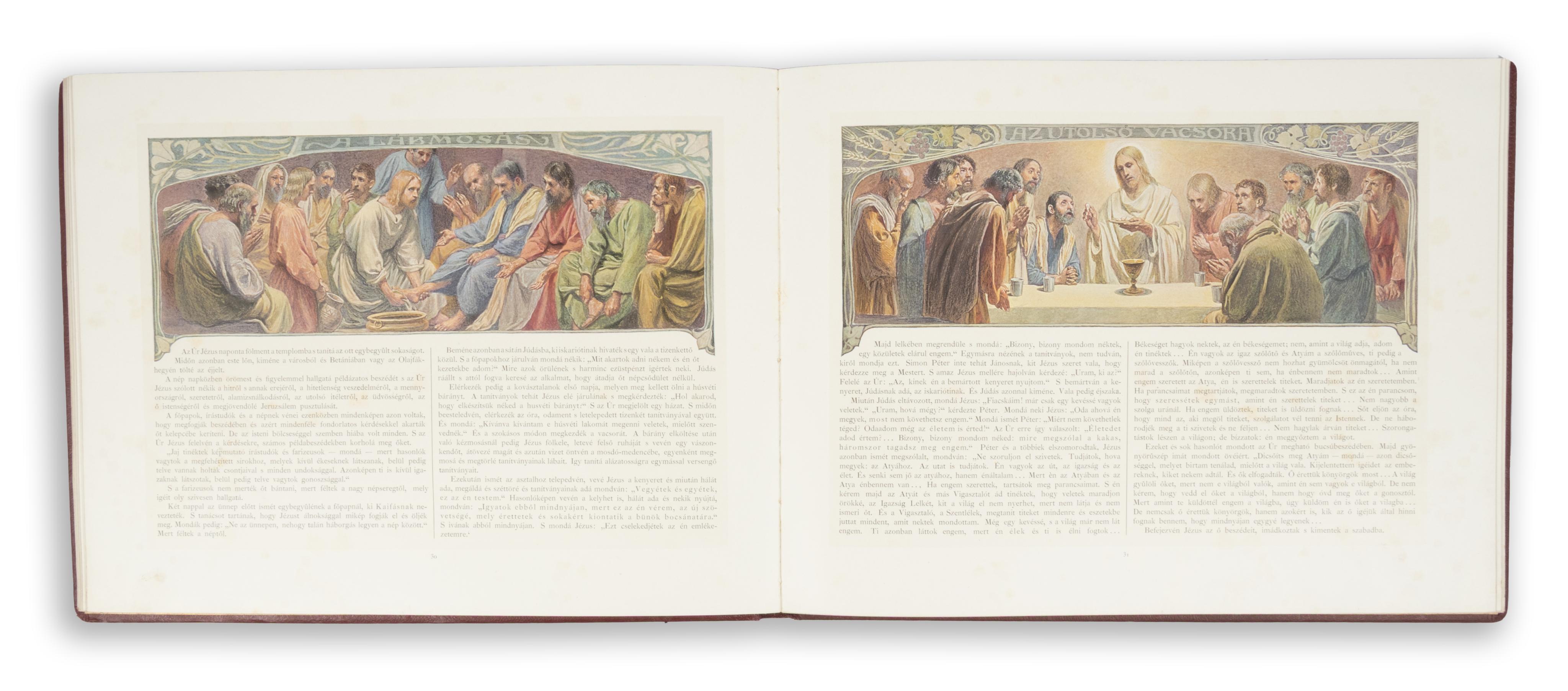 Budapest, 1903. Az »Egyházi Közlöny« kiadása[4] + 48 + [4]p. Harántfolio. A szöveget az illusztrátor szép, fekete-fehér és színes szecessziós jellegű képei veszik körül.