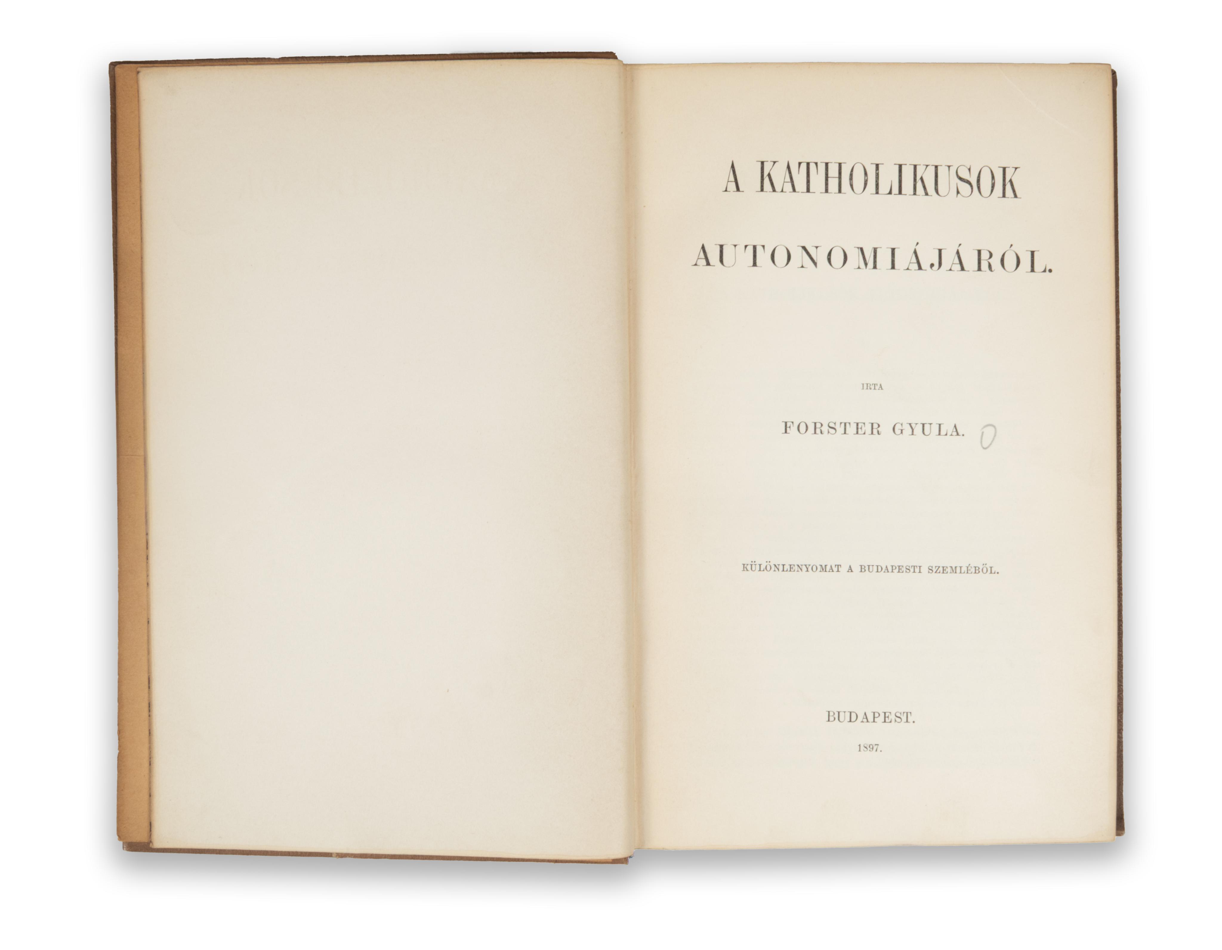 Forster Gyula : A katholikusok autonomiájáról