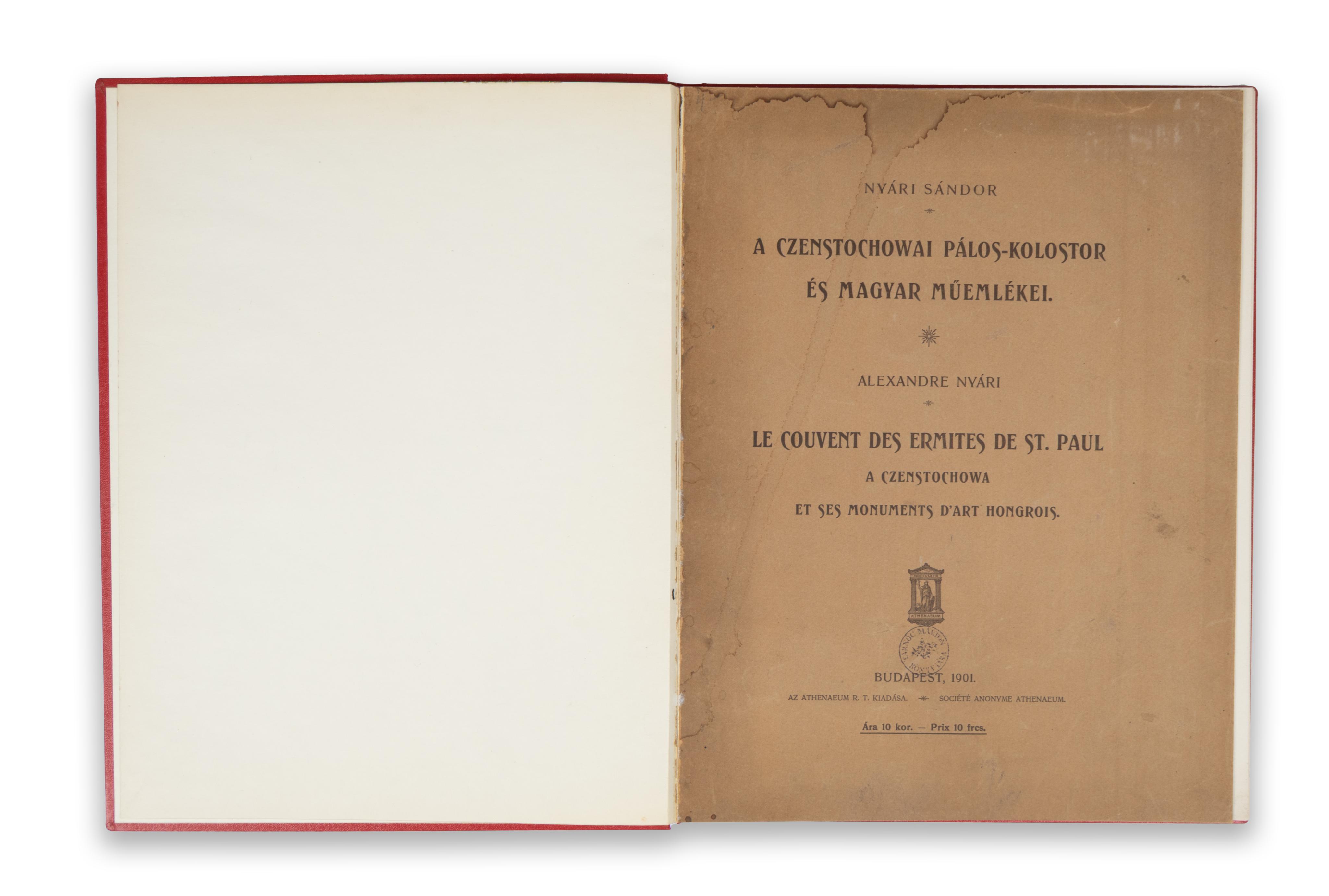 A czenstochowai Pálos-kolostor és magyar műemlékei / Le Couvent des ermites de St. Paul a Czenstochowa et ses monuments d'art hongrois.