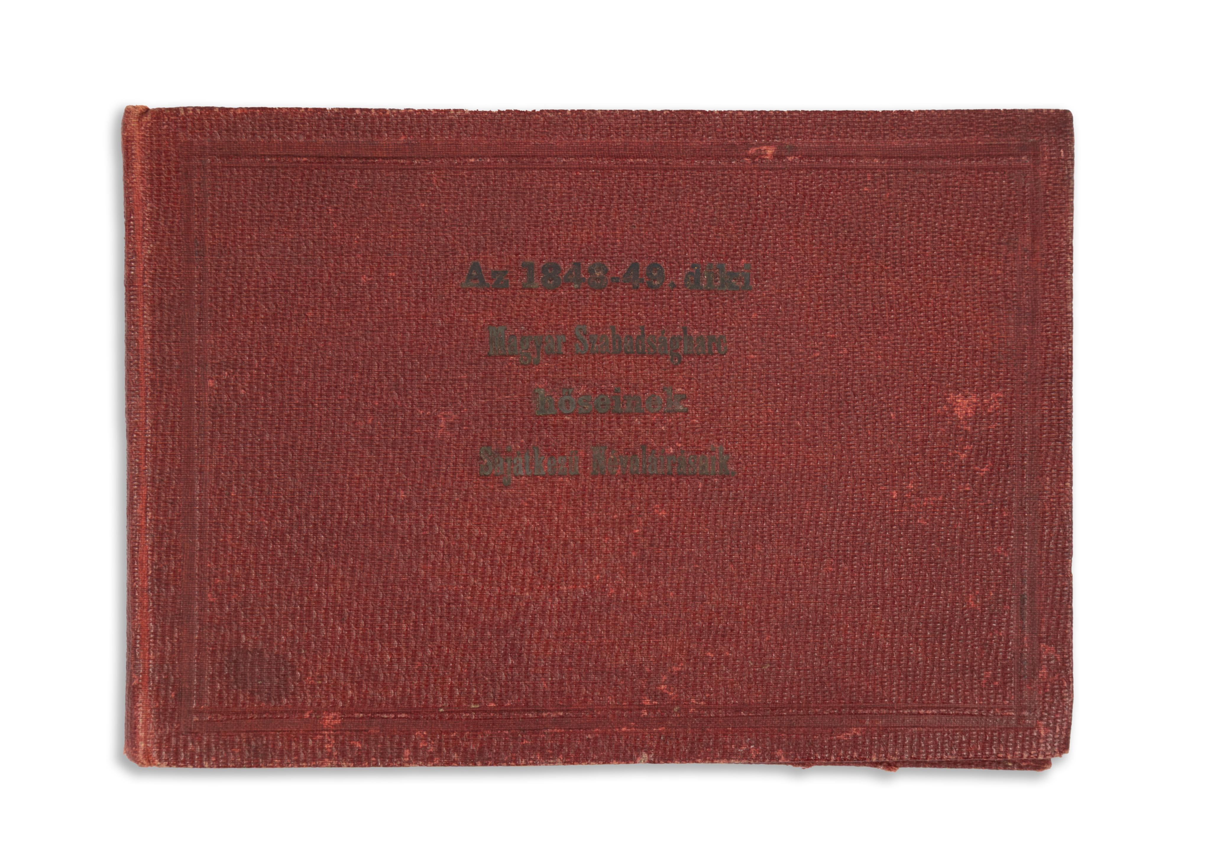 1848-1849Korabeli egészvászonkötéses, haránt alakú albumba beragasztva a következő hősök és vértanúk levelekről levágott autográf aláírása: 1. az ország Kormányzója Kossuth Lajos (1802-1894); 2. Aulich Lajos (1793-1849) honvéd vezérőrnagy, hadügyminiszter, aradi vértanú; 3. Bem József. (1794-1850) tábornok; 4. Damjanich János (1804-1849) honvéd vezérőrnagy, aradi vértanú; 5. Klapka György (1820-1892) honvédtábornok; 6. Lahner György (1795-1849) honvéd vezérőrnagy, aradi vértanú; 7. Leiningen-Westerburg Károly (1819-1849) honvéd vezérőrnagy, aradi vértanú; 8. Nagysándor József (1803-1849) honvéd vezérőrnagy, aradi vértanú; 9. Poeltenberg Ernő (1808-1849) honvéd vezérőrnagy, aradi vértanú (az írás elhalványult); 10. Gróf Vécsey Károly (1803-1849) honvéd vezérőrnagy, aradi vértanú (a gróf eredeti viaszpecsétjével, a következő körfelirattal: "Gróf Vécsey tábornok K. Magy. Mozgóhadsereg parancsnoka").