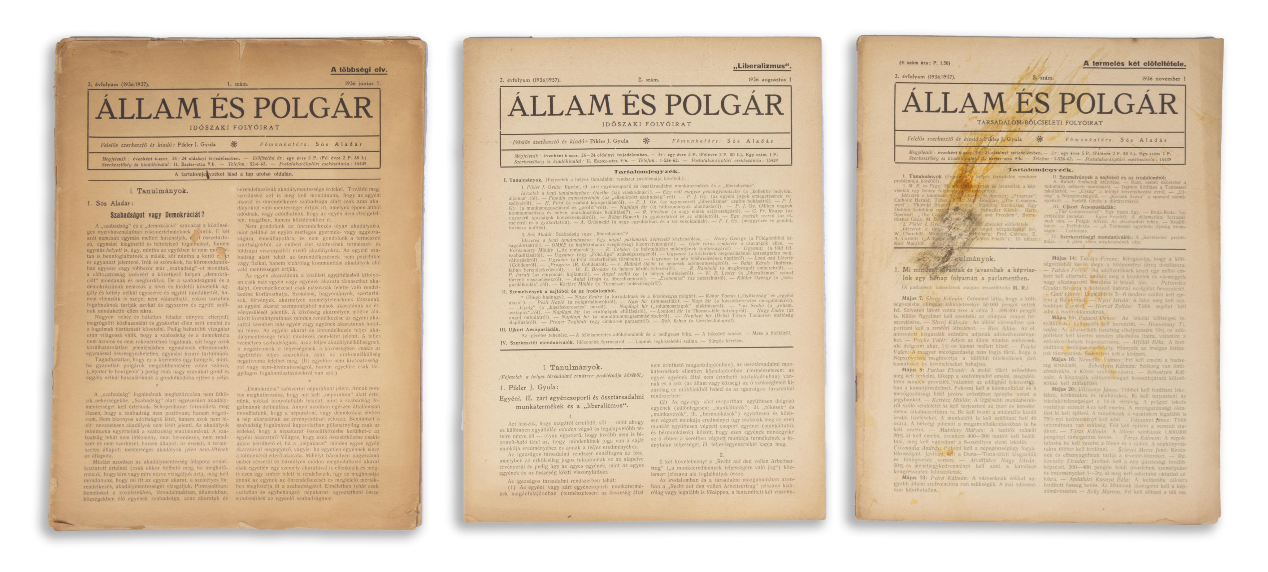 "State and Citizen" was a legal and social science journal published at the beginning of the 20th century, edited by Gyula J. Pikler.