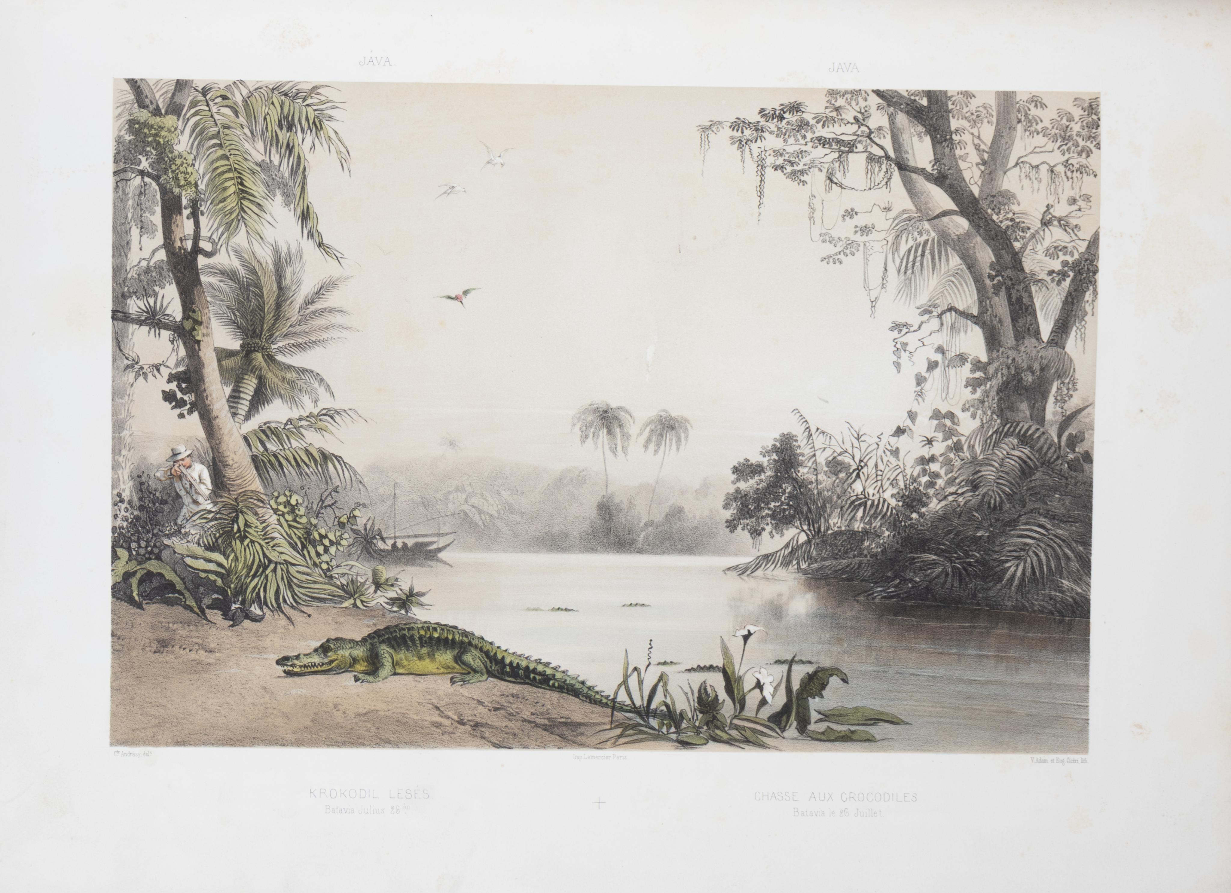 Az első német kiadás, egyben az első illusztrált kiadás; az eredeti magyar kiadás 1853-ban jelent meg. Gróf Andrássy Manó (1821–1891) az 1848-as forradalom leverése után kénytelen volt elhagyni Magyarországot – akárcsak testvére, Andrássy Gyula, a későbbi magyar miniszterelnök. Az emigráció éveit egy kiterjedt ázsiai utazásra használta fel, amelynek során szenvedélyének, a nagyvadászatra való hajlamának is hódolt. Tehetséges rajzolóként maga készítette el a mű pompás litográfiáinak alapjául szolgáló rajzokat. A képek elefánt- és tigrisvadászatokat, valamint hongkongi és kalkuttai utcajeleneteket, táncelőadásokat és egyéb érdekes epizódokat örökítettek meg.