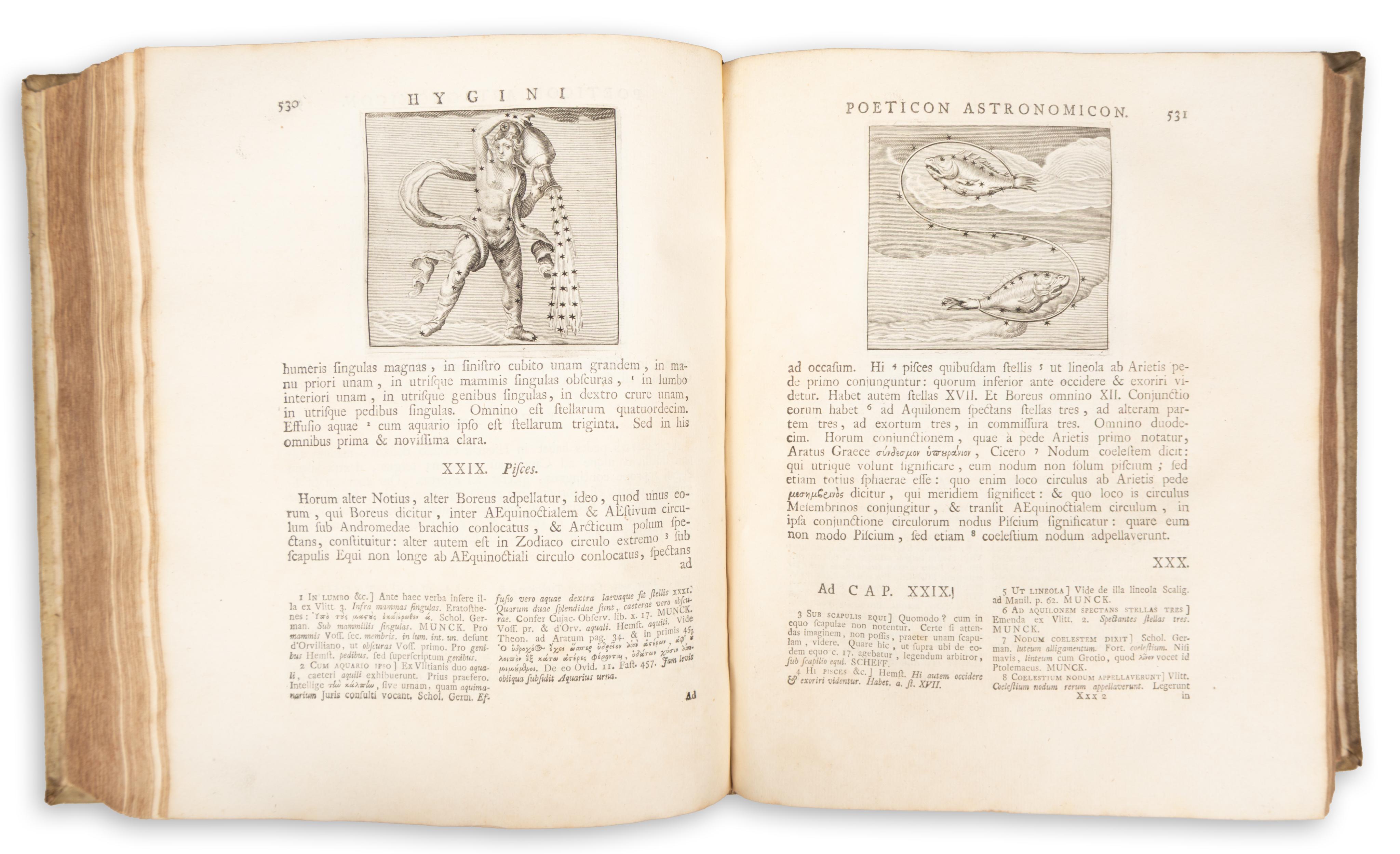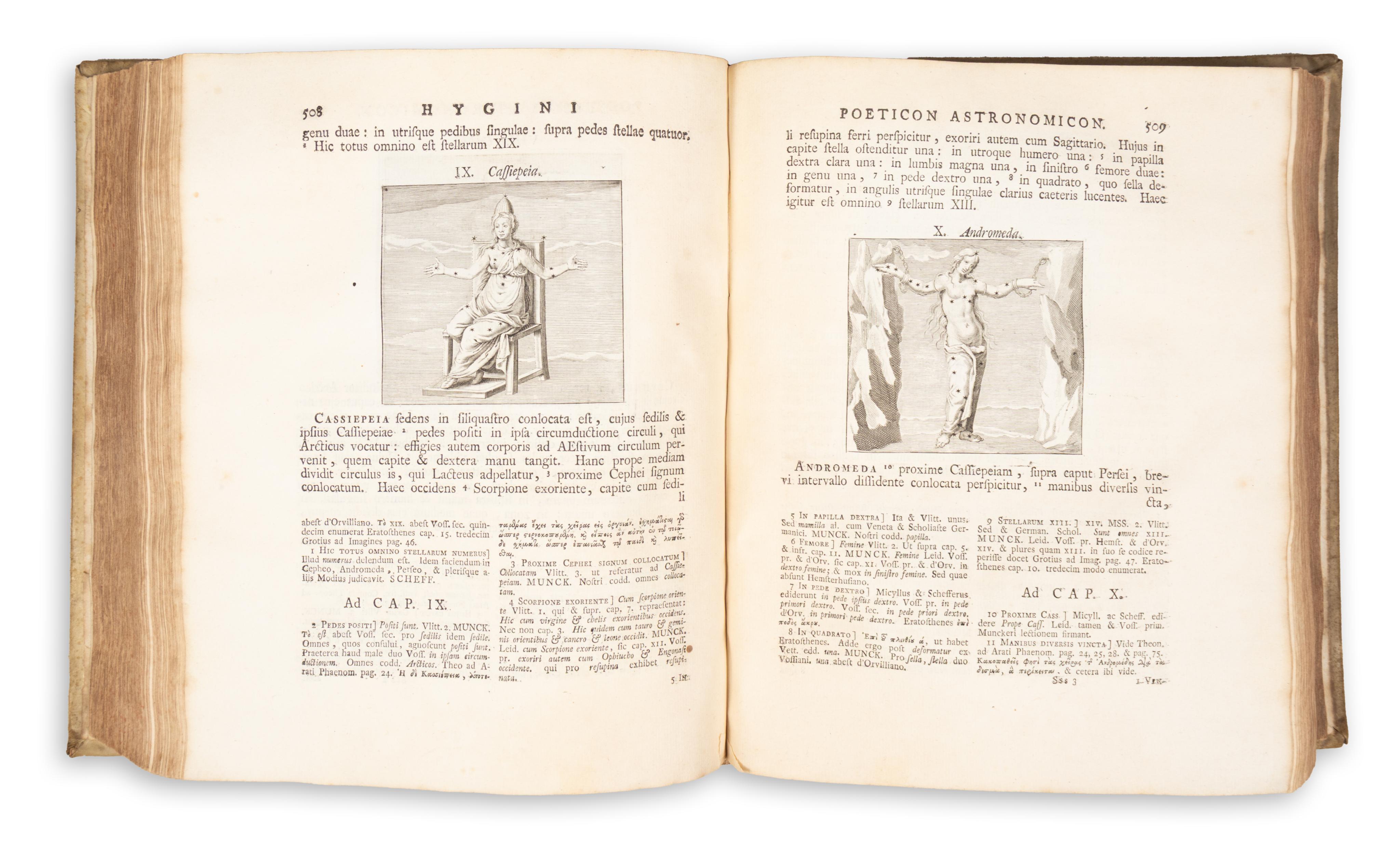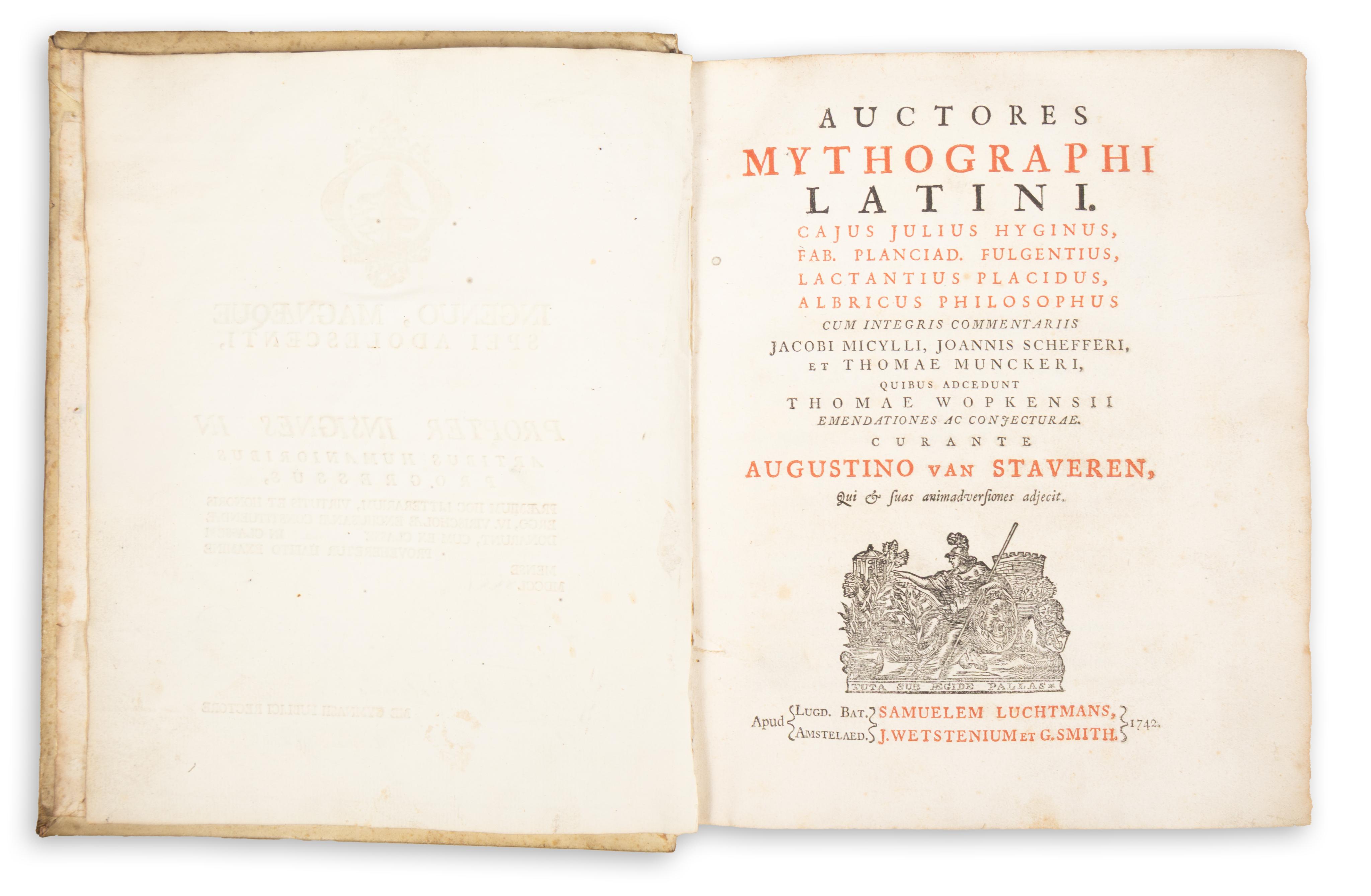 Értékes és ritka kiadás, amelyet Augustin van Staveren holland filológus szerkesztett latin írók szövegeit tartalmazó gyűjteményből, különböző filológusok és humanisták kommentárjaival. Hyginus Fabulái (egy mitológiai értekezés) és a Poeticon Astronomicon illusztrált kiadása a csillagképek képi ábrázolásait tartalmazza. Az afrikai nyelvész, Fulgentius Planciadestől a Mythologicont, az Aeneis értelmezését és az ókori prédikációk ismertetését, valamint Lactantius Fabulái is szerepelnek a kötetben.